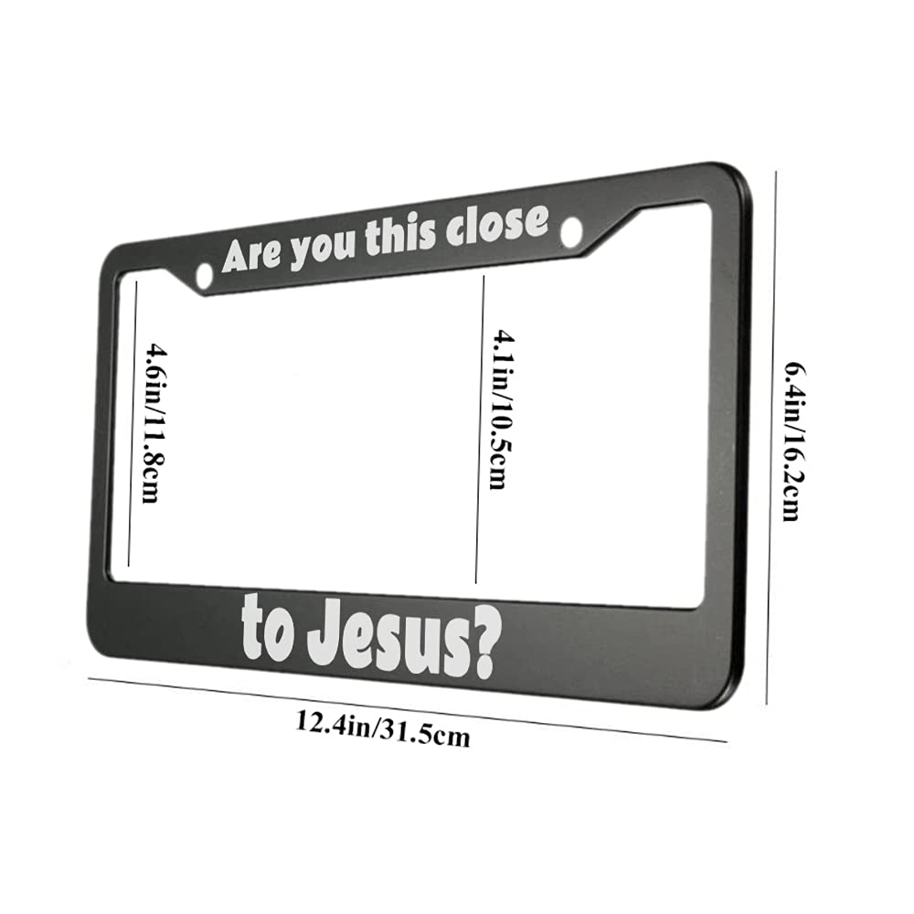 Our are You This Close To Jesus Aluminum Alloy License Plate Frame White Black Applicable to US Standard Car Metal Car Tag Frame(1 PACK) We fab these License plate frames out of an outdoor durable aluminum alloy composite material, to protect the image from fading and protect the image from road debris, extending the life of the graphic Durable aluminum frame with aluminum coating. This license plate holder is the perfect accessory for your vehicle. Please check the product image for frame size. Please measure your license plate to make sure the upper or bottom lip of the frame won't cover the state name. Specifications: Frame size: 12.4" X 6.4" Frame material: thin aluminum sheet metal Package Includes: 1 x License Plate Frame Tips: Sold individually (not a pair). Get one for the front and back of your vehicle. After-sales Service: If you have any questions, please contact us through our shop. We will reply within 24 hours.