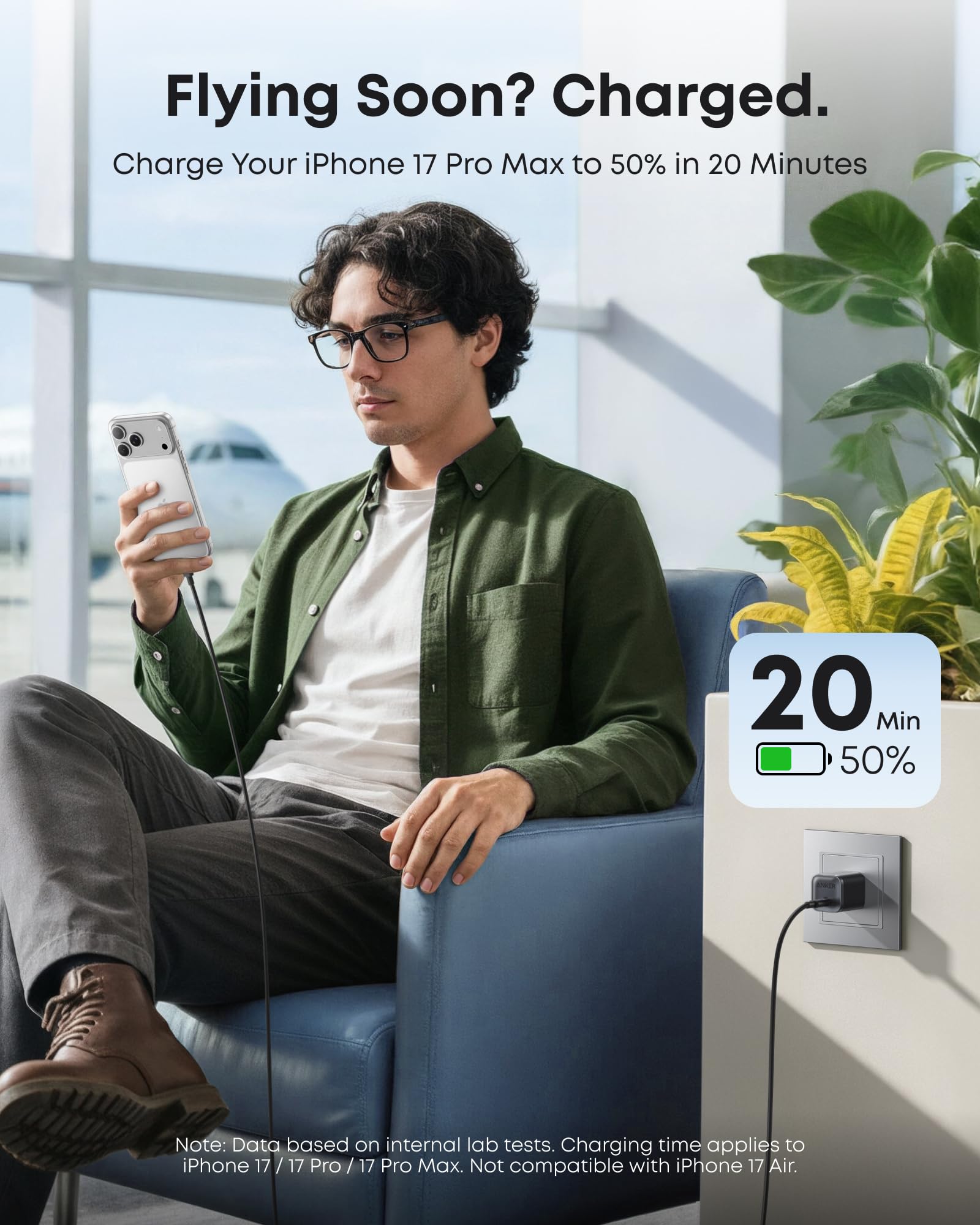 Quick Power Boost: Experience fast iPhone charging speeds with Super Fast Charging, powered by advanced GaN technology—perfect for quick energy boosts.