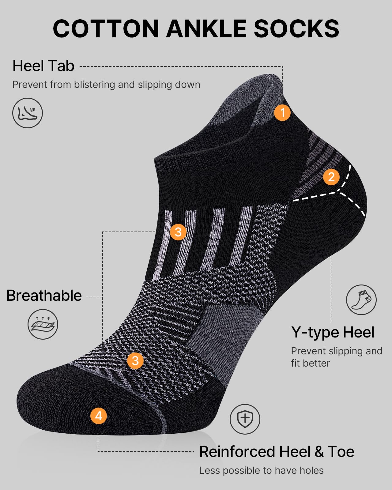 Long-Lasting Durability: Cushioned toes and heels are built to handle high-friction areas, ensuring these running socks are durable enough for workouts and daily wear