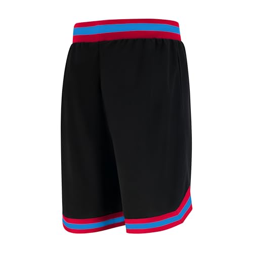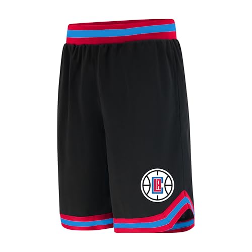 FUNCTIONAL AND STYLISH DESIGN: A black body creates bold color contrasts with NBA team logos. Functional additions include two side pockets and a loose fit for unrestricted movement.