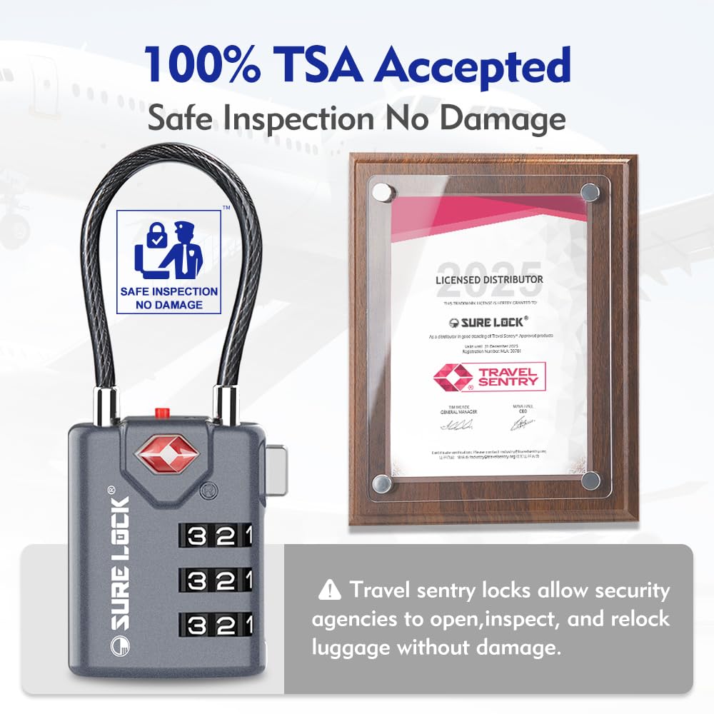 A SECURE LOCK WHICH WORKS WITH NEARLY ANY KIND OF LUGGAGE. Cable locks can secure luggage which steel shackle locks can not. Pellican cases, gun cases, equipment cases, etc. can all be locked easily and safely with our flexible cable. At an ideal lenght of 4 inches from end to end and a closed lenght of 1.5 inches, SureLock's cable is the ideal size for your travel security needs.