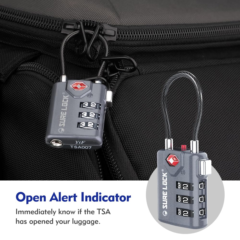 PEACE OF MIND WITH AN INSPECTION INDICATOR. Know if your luggage has been inspected as soon as you pick it up at the airport with our pop-up inspection indicator. If the TSA has opened your luggage, a button will pop out of the top of the cable lock. You'll know to double check your luggage to make sure nothing has gone missing while you're still at the airport instead of at your hotel or final destination.