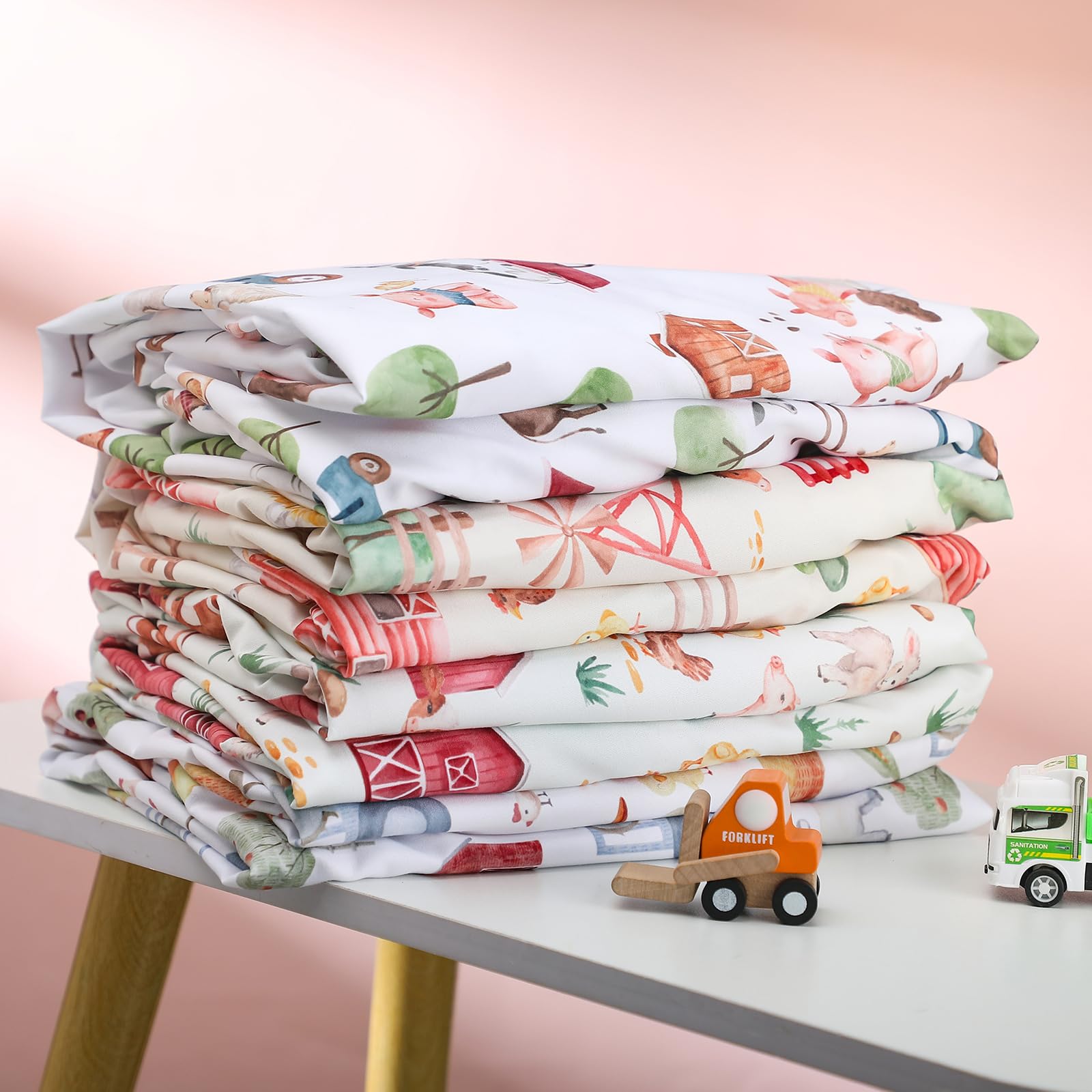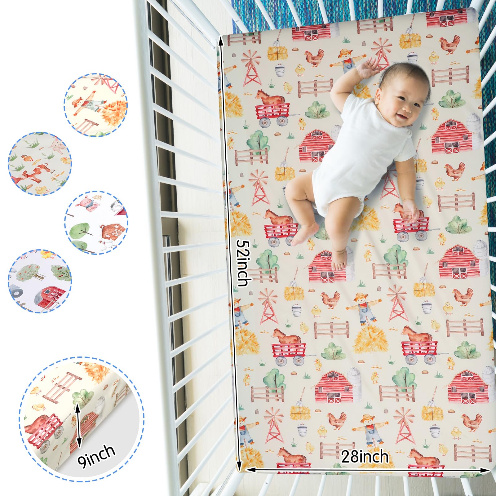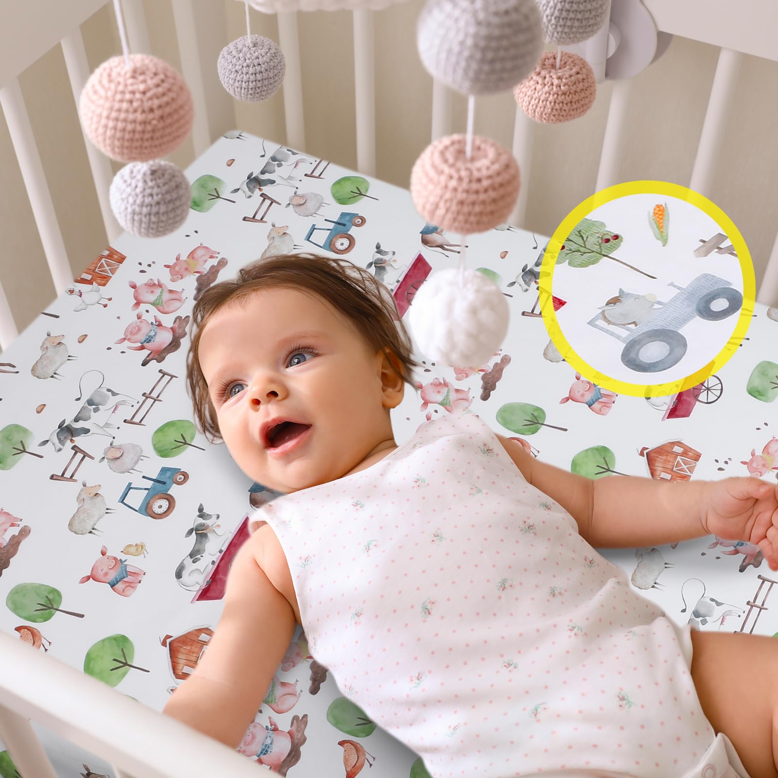 Quality Polyester Material for Comfort and Safety: each farm animals crib sheet is made from quality polyester, a material renowned for its durability and comfort; This synthetic material is not only resistant to tears and wears but also gentle on your baby's skin, ensuring a safe and restful sleep for your little one