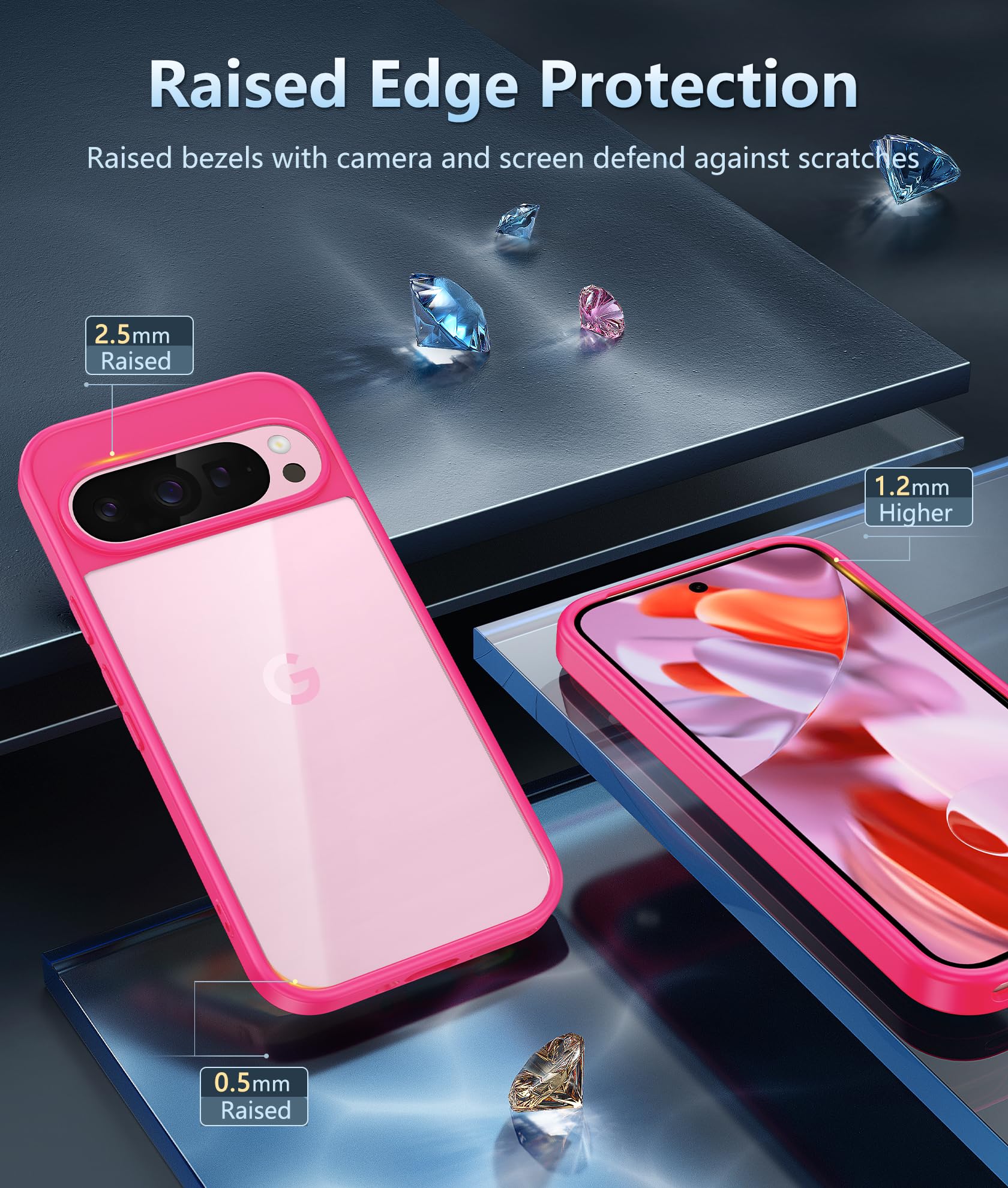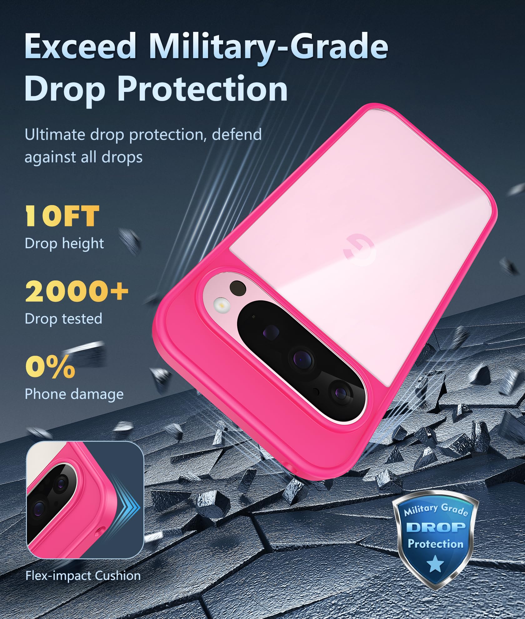 10FT Military Grade Protection: Passed Military Drop Tested up to 10 FT. This Google Pixel 9 Pro XL clear case backplane is made with rigid polycarbonate and flexible shockproof TPU bumpers around the edge and features 4 built-in corner Airbags to absorb impact, which can prevent your Phone from accidental drops, bumps, and scratches