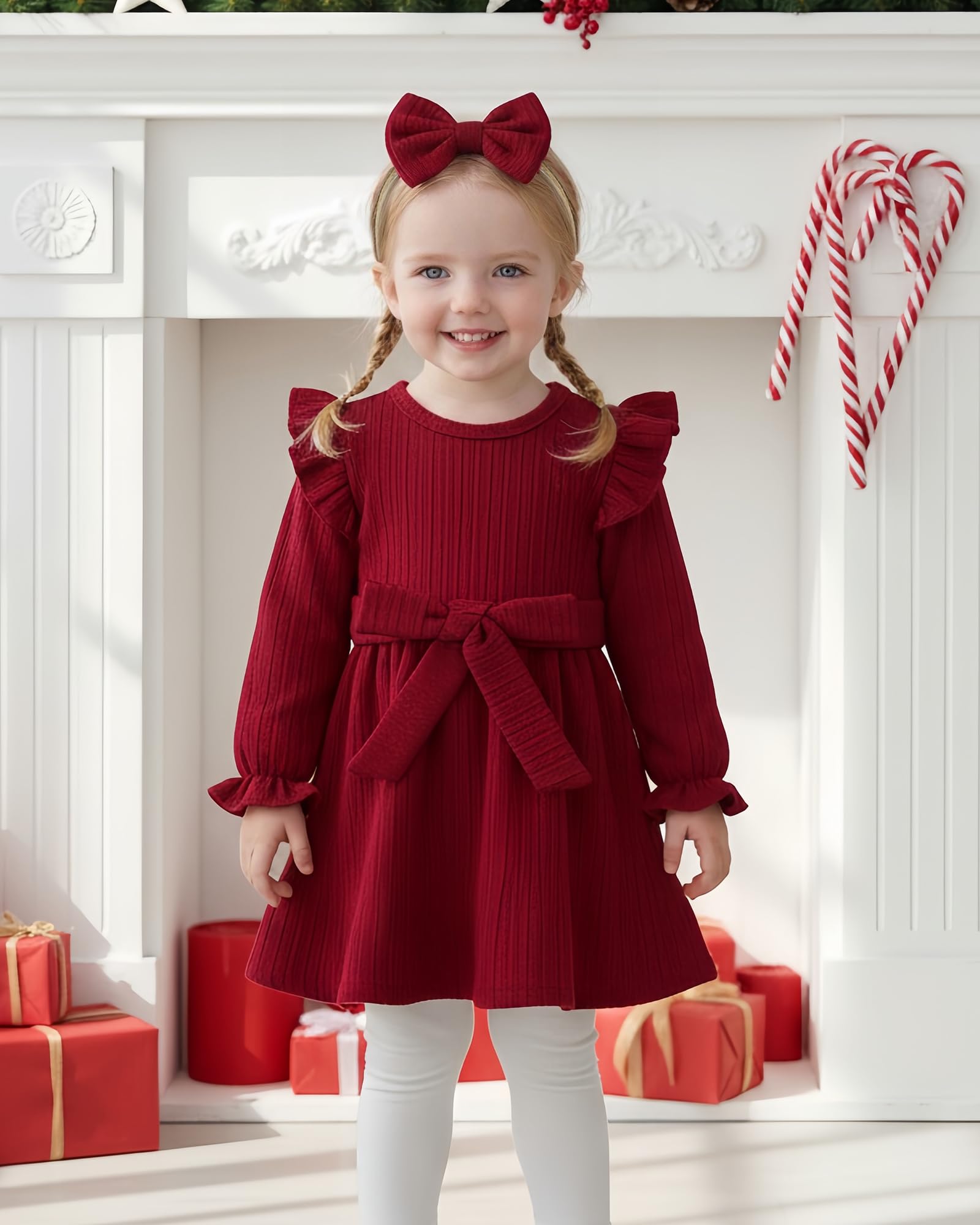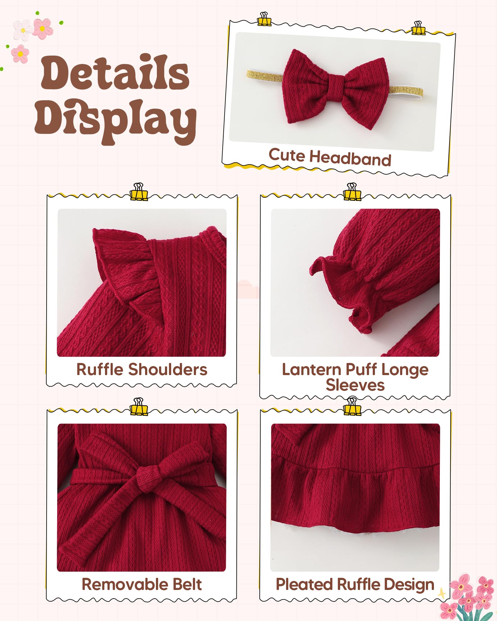 Design: Baby girl dresses design with cute lantern puff sleeves and delicate bowknot decoration cute headband.The baby dress is elastic waist-skimming and matching with belt which will make your baby girl more lovely and fashionable