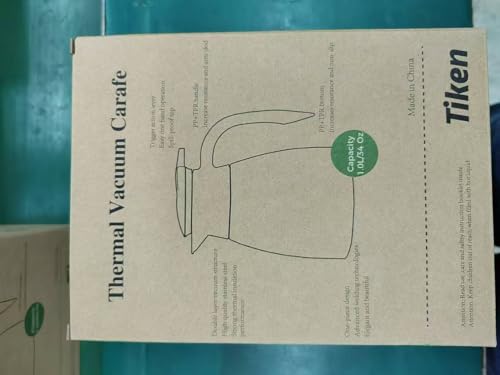 This coffee carafe has a capacity of 34 Oz(1.0L). Tiken vacuum insulation technology locks in temperature to preserve flavour and freshness, that keeps the temperature above 173.7°F at 12 hrs (assuming a starting temperature of 203°F, a room temperature of 68 °F and water left untouched throughout the duration of the test). Pls note test results will vary depending on beverage starting temperature and how full the carafe is.