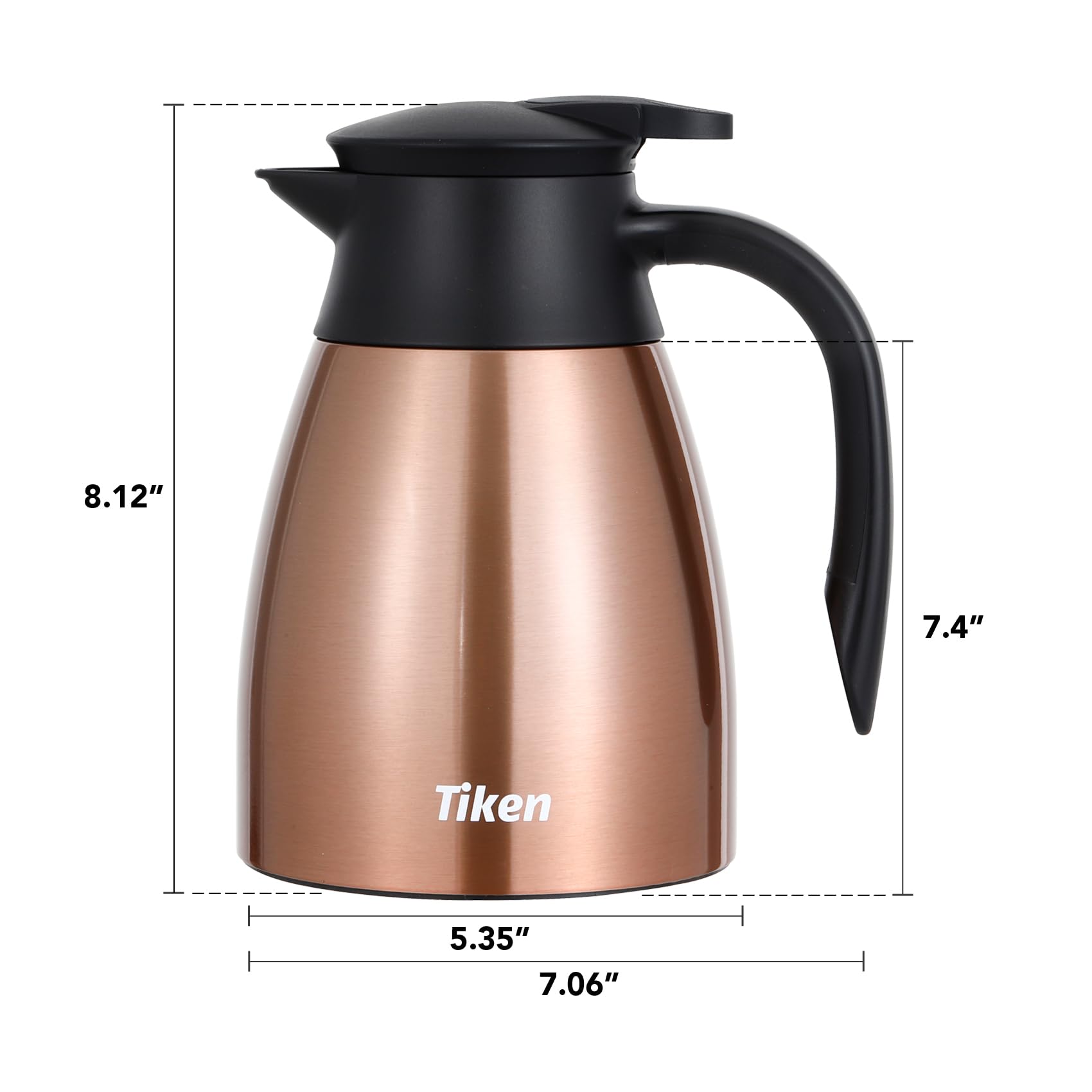 Our thermal coffee carafe uses a Press-down opening/closing mechanism. Pouring easily with push button ease, making one-handed pouring of the carafe simple.
