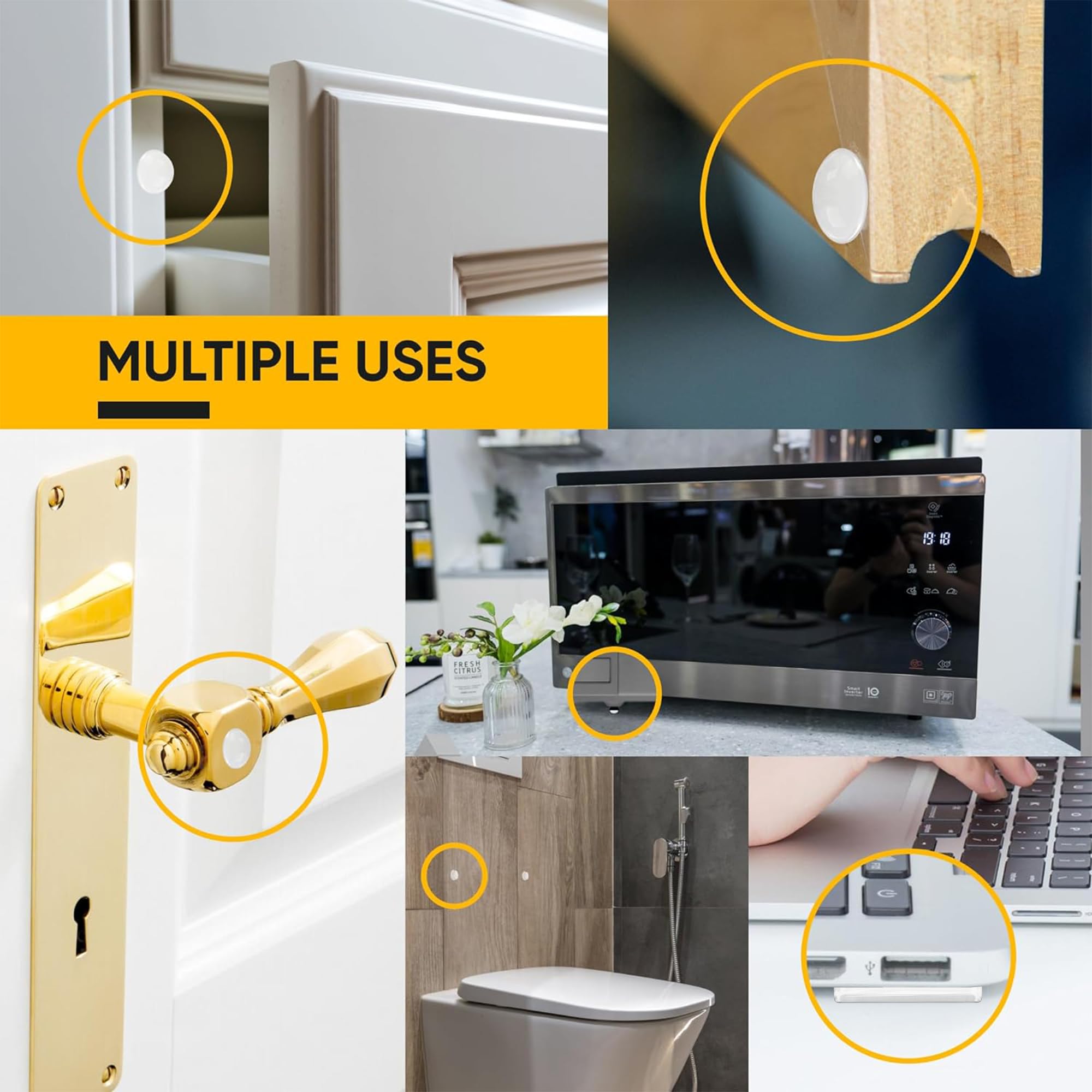 Strong Self-Adhesive Backing: Equipped with a powerful self-adhesive backing, these cabinet bumpers ensure a firm hold on any surface, preventing them from sliding off. The adhesive is strong enough to stick to various materials, including wood, glass, metal, and ceramics, ensuring long-lasting protection