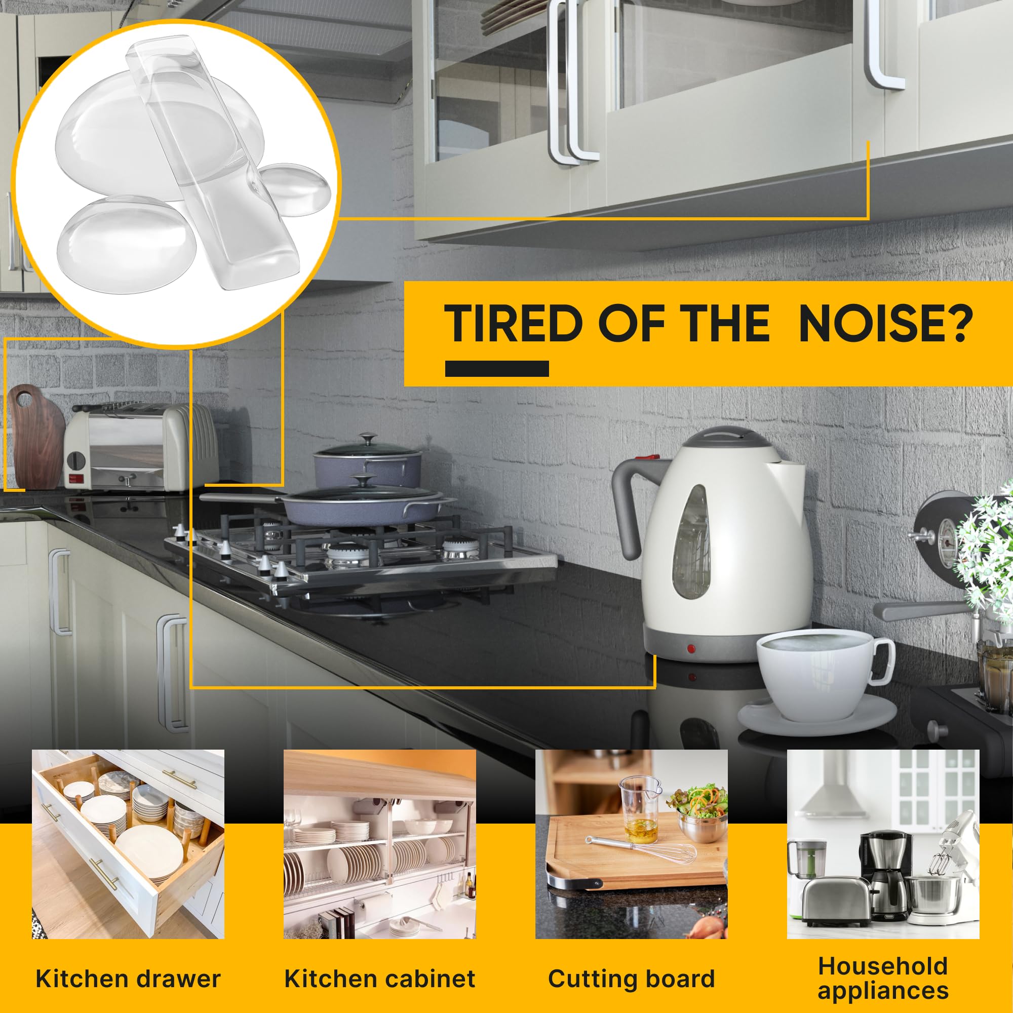 Comprehensive Protection and Noise Reduction: This set includes a variety of sizes (40pcs 0.31"x0.12", 32pcs 0.43"x0.2", 12pcs 0.79"x0.2", and 20pcs 1.63"x0.23"x0.08") to provide optimal protection and sound dampening for cabinet doors, drawers, and cupboards, reducing the harsh sounds of slamming and protecting surfaces from scratches and impacts