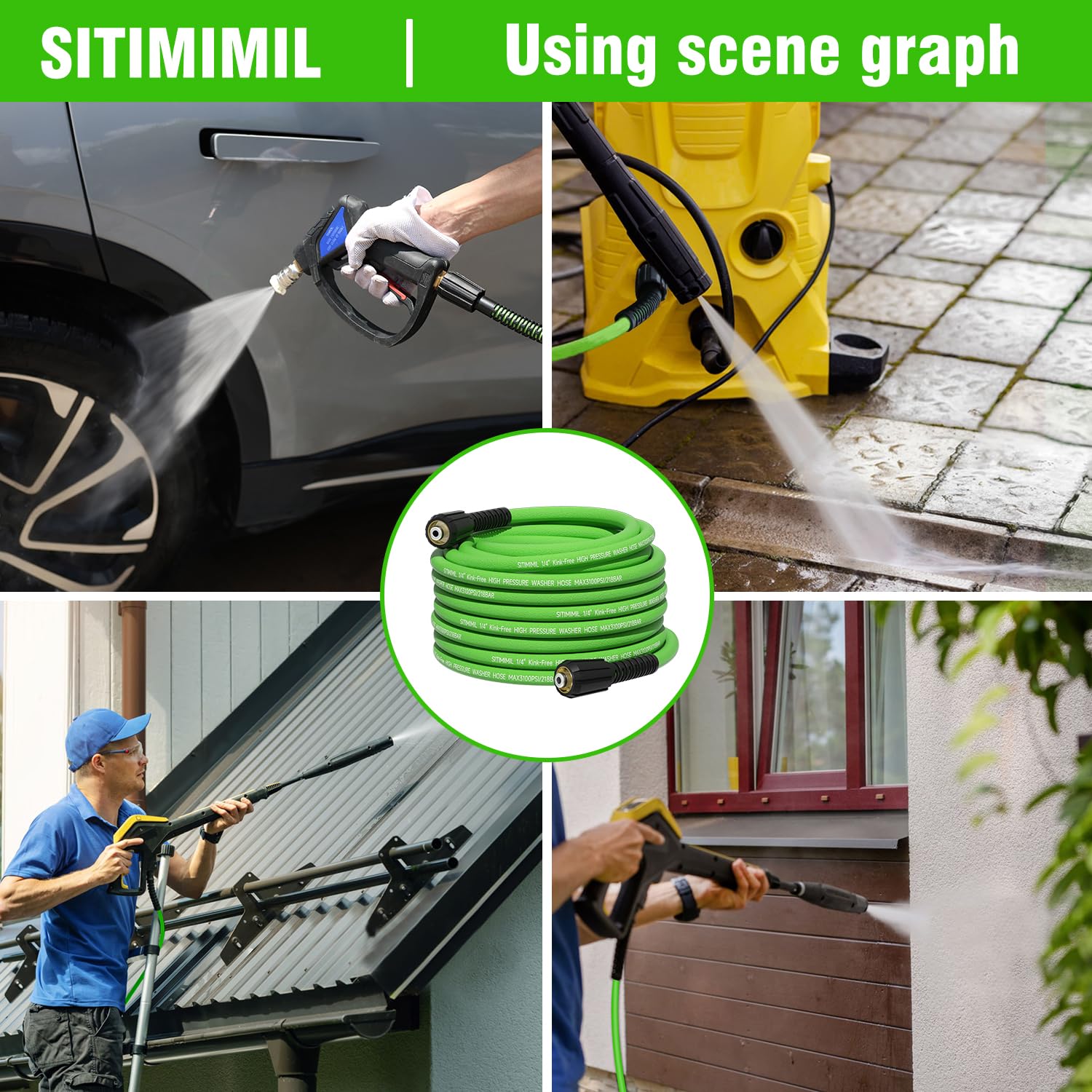 Super Flexibility: The 50 ft pressure washer hose is achieved with innovative high-quality and superior flexible materials. It's kink-resistant, easy to carry, drag, wind up, and store, bringing great convenience to your high-pressure cleaning tasks