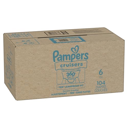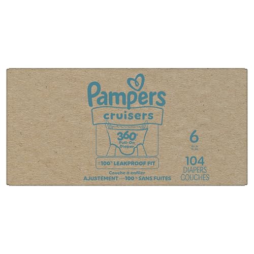 Pampers Cruisers 360° is the #1 Pull-On Diaper* designed for an active toddler’s every move—now with EZ-off tabs for easy changes. Unlike ordinary disposable diapers that gap in the back, Pampers Cruisers 360 diapers stretch comfortably around your baby's waist and adapt to their every move for a flexible, Babyproof and gap-free fit that is up to 100% leakproof. From the #1 Pediatrician Recommended Brand**, Pampers Cruisers 360° feature a 360-degree stretchy waistband for a secure, Stay-Put Fit that moves with your baby through the crawling age, standing age, and all their wild adventures. EZ-off tabs make toddler diaper changes stress-free and mess-free—whether your toddler is lying down or standing up. Just tab off, wrap up, and pull on a fresh diaper pant. These pull on diapers are also hypoallergenic, dermatologically tested, and free of parabens and latex***, giving you trusted protection and comfort. Plus, Dual Leak-Guard Barriers help prevent up to 100% of leaks—even blowouts. To find your baby’s ideal Stay-Put Fit, just measure by weight and reference our available baby diaper sizes: • Size 3 diapers (16–28 lbs.) • Size 4 diapers (22–37 lbs.) • Size 5 diapers (27+ lbs.) • Size 6 diapers (35+ lbs.) • Size 7 diapers (41+ lbs.) Pair with Pampers Ultra Clean Baby Wipes to help make every change quick and clean. *Based on 52-week Nielsen volume sales of pull-on disposable diapers **Based on 2021 survey of U.S. and Canadian pediatricians *** No natural rubber