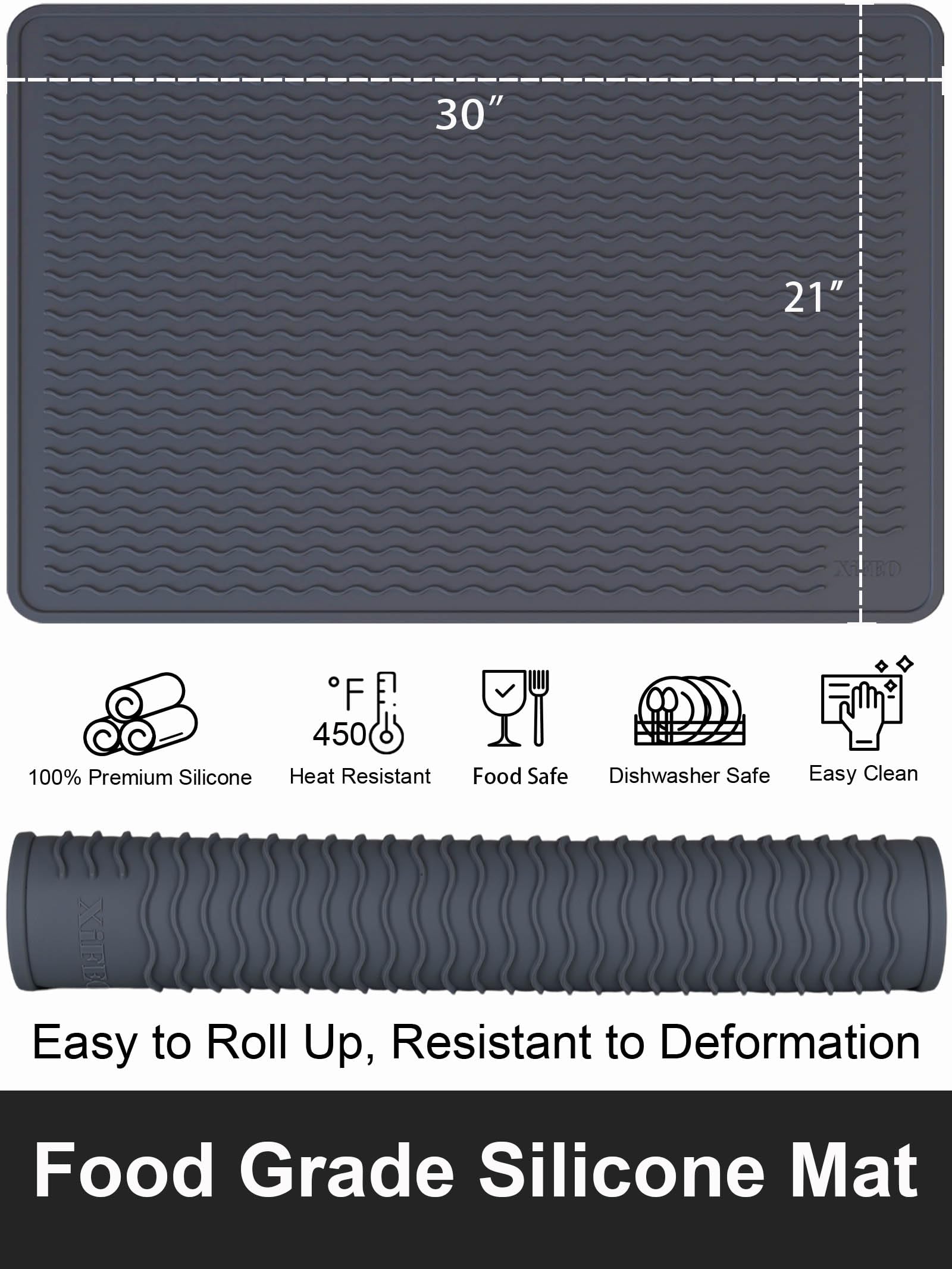[Silicone Trivet Mat] Elevated wave patterns ensure efficient heat dissipation, while our silicone mat withstands temperatures up to 450°F, safeguarding your surfaces from heat damage. Caution: Do not cover induction cookers exceeding 450°F or place over active cookers.