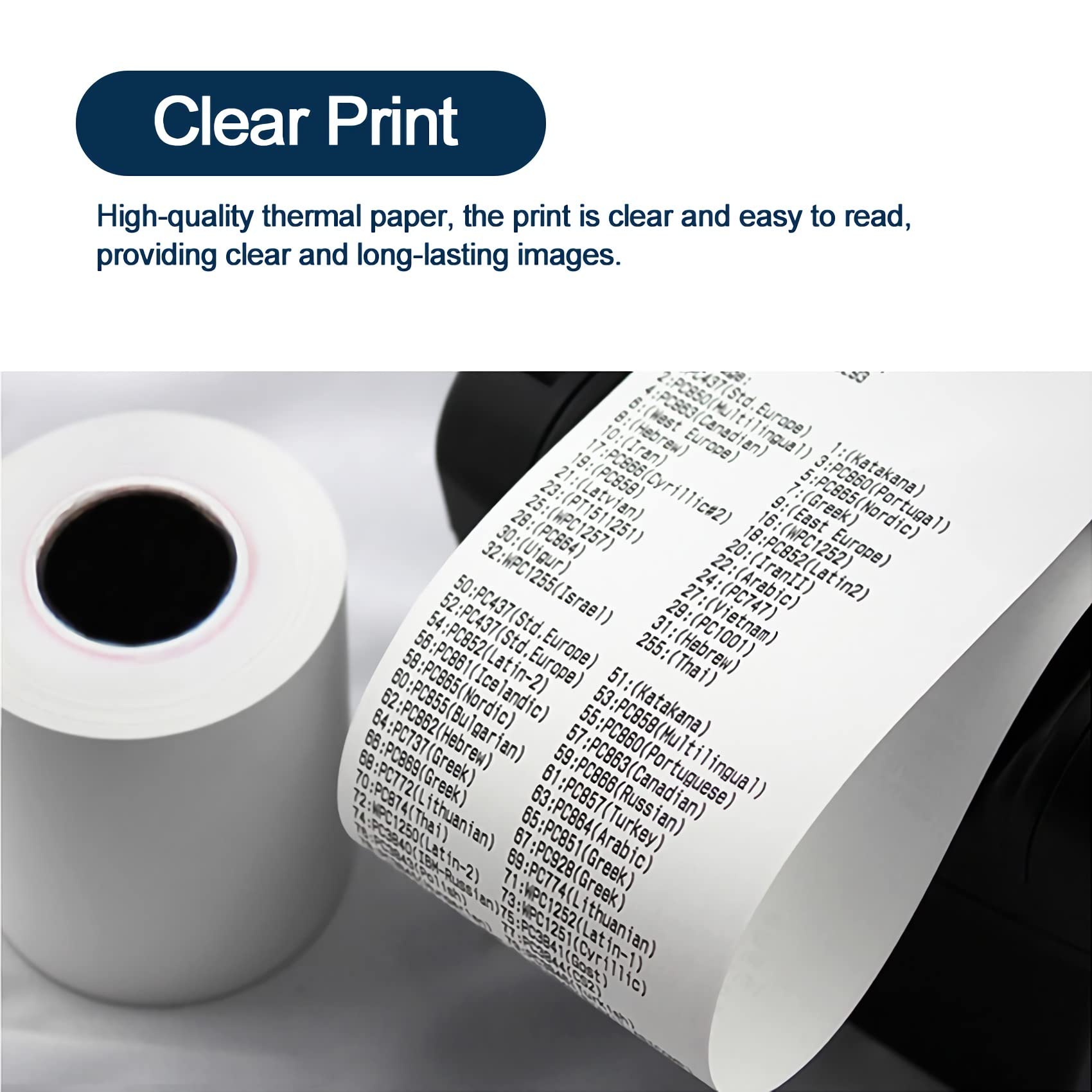 【Clear Print】High-quality thermal paper, the print is clear and easy to read, providing clear and long-lasting images. It can be used as a receipt, shopping list, queue number, shopping mall invoice, etc., suitable for restaurants, retail stores, banks, shopping malls.