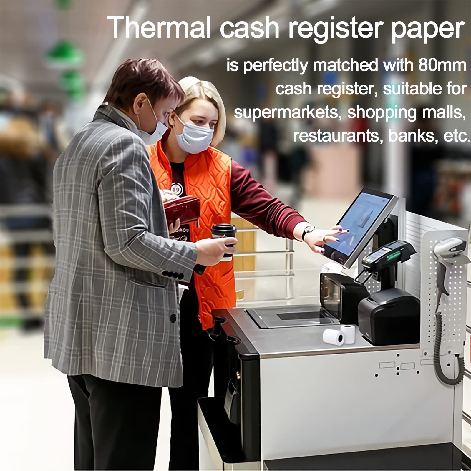 【Easy to Use】Our receipt paper is smooth and helps prevent paper jams, protecting your printer. The cash register paper is coated with a thermal layer, without ink or toner, direct thermal printing, convenient and simple to use.