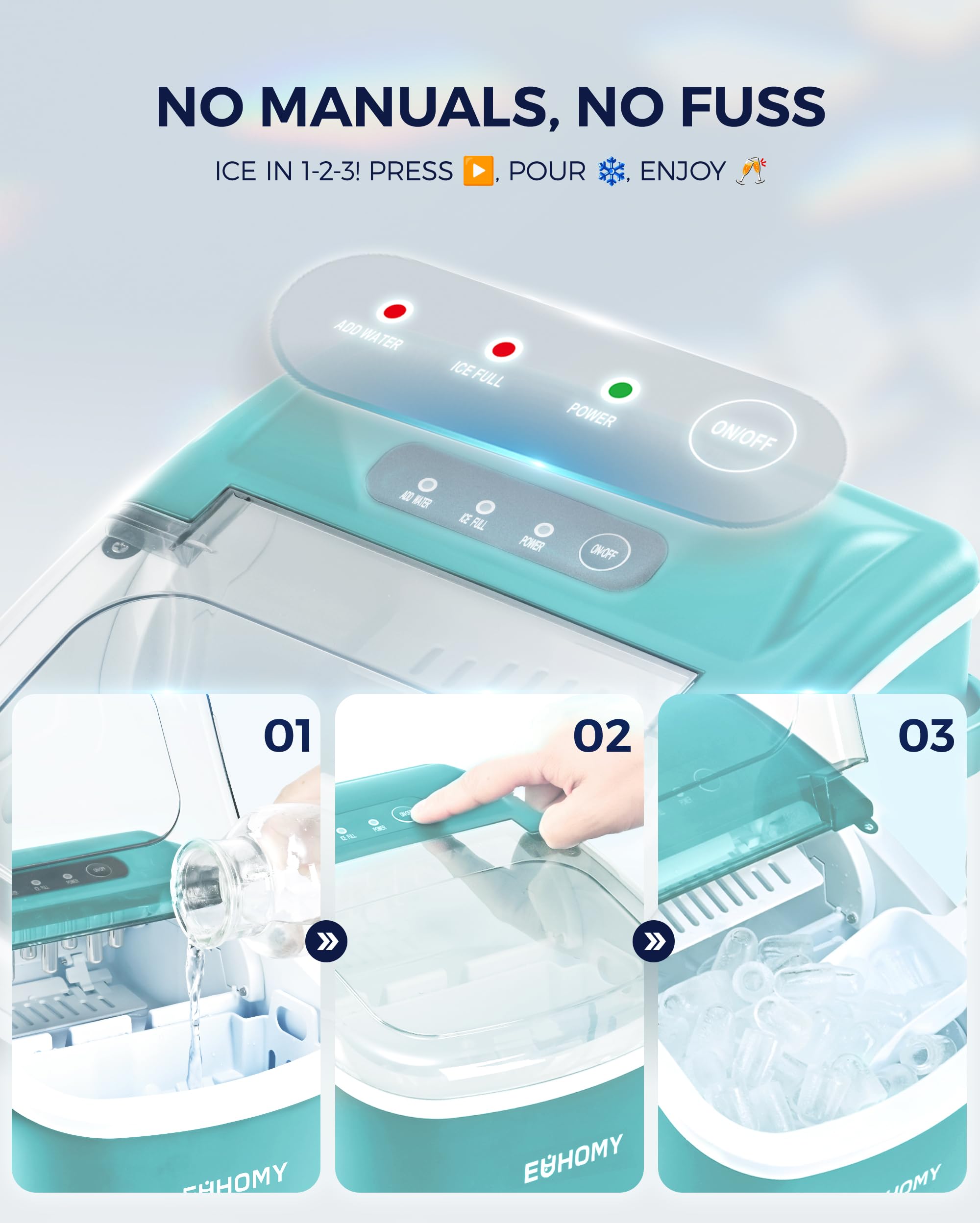Included Accessories & Service Promise: Include handle, ice basket, ice scoop, manual and well-designed package. Our Mission is committed to providing customers with premium Euhomy ice maker at a reasonable price. You totally deserve a more exquisite life! We offer 12-month after-sales service from the original purchase date & technical service support. Suppose you have any questions about using our Ice Maker, our customer support is always ready to help you