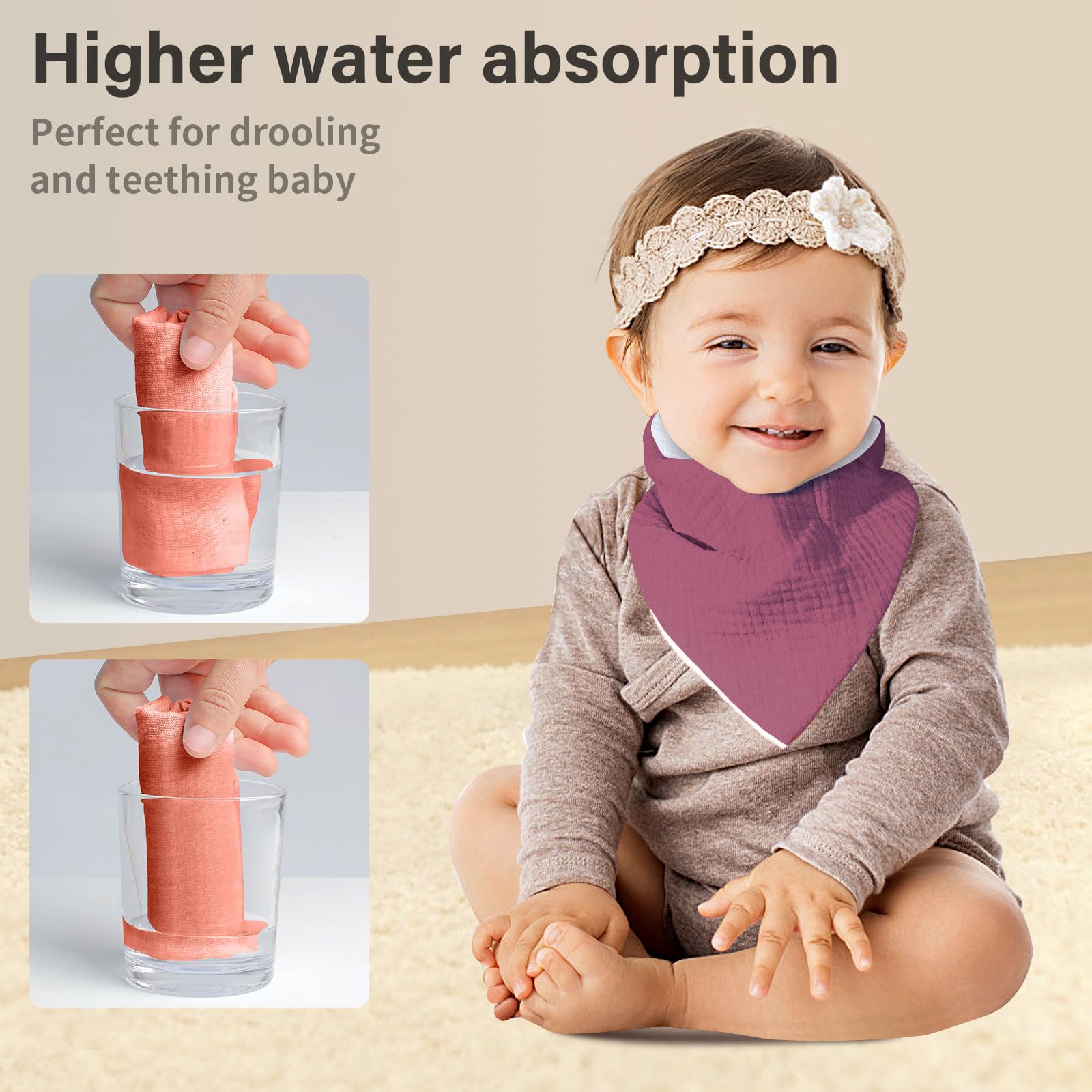 【Soft & Cozy】: The Nisxabebe bandana bibs front are crafted from muslin,known for its softness.Thanks to muslin's superb breathability, babies will feel incredibly comfortable while wearing it. The soft fluffy plush backing boosts the bib's absorbency.