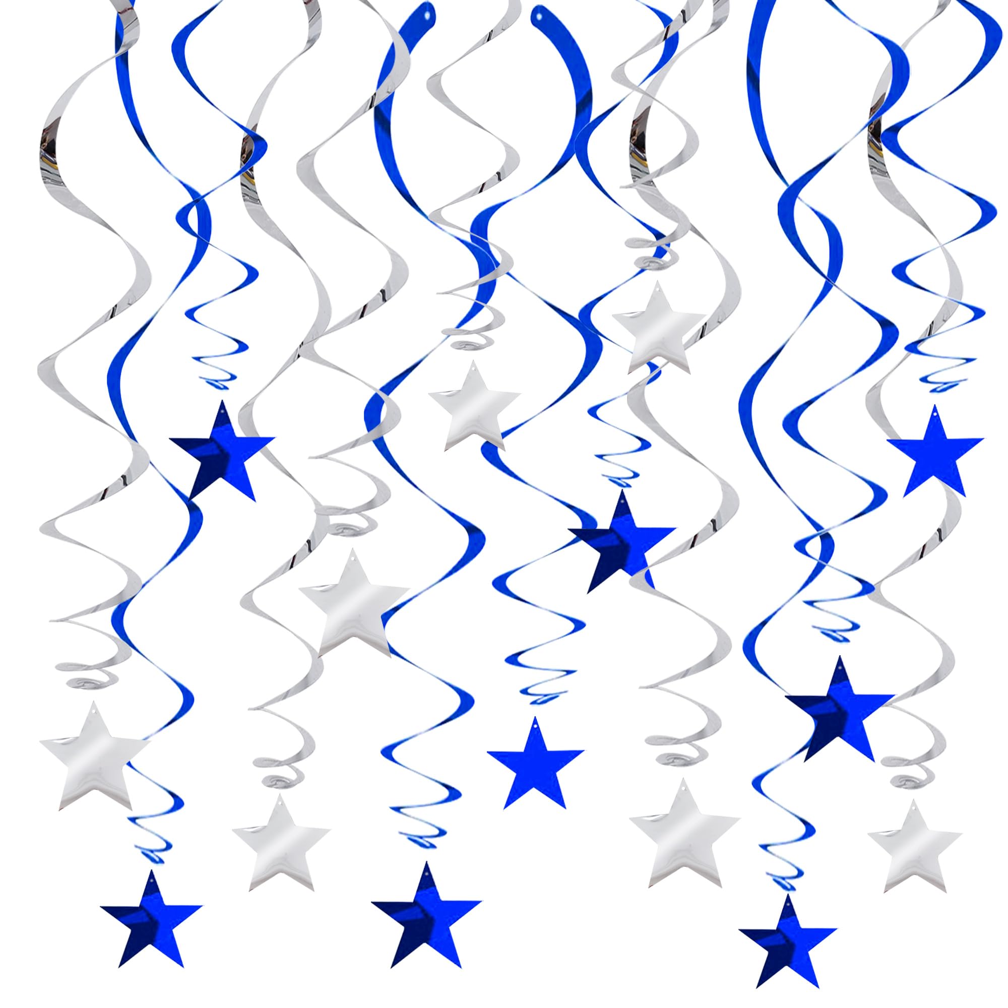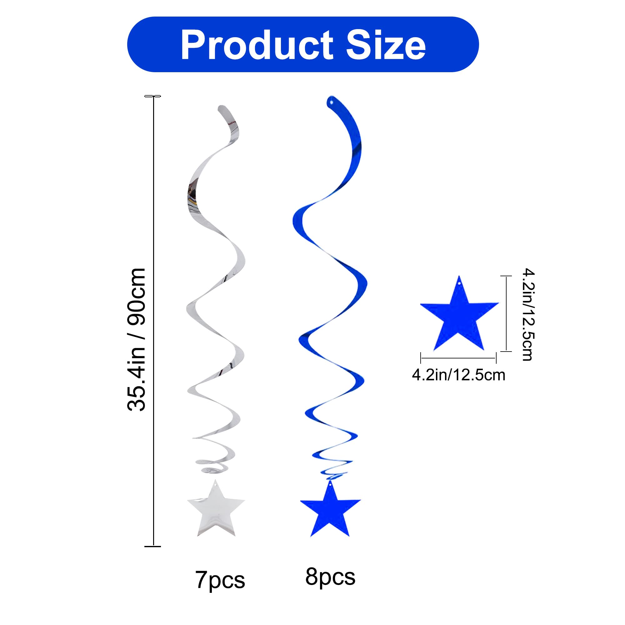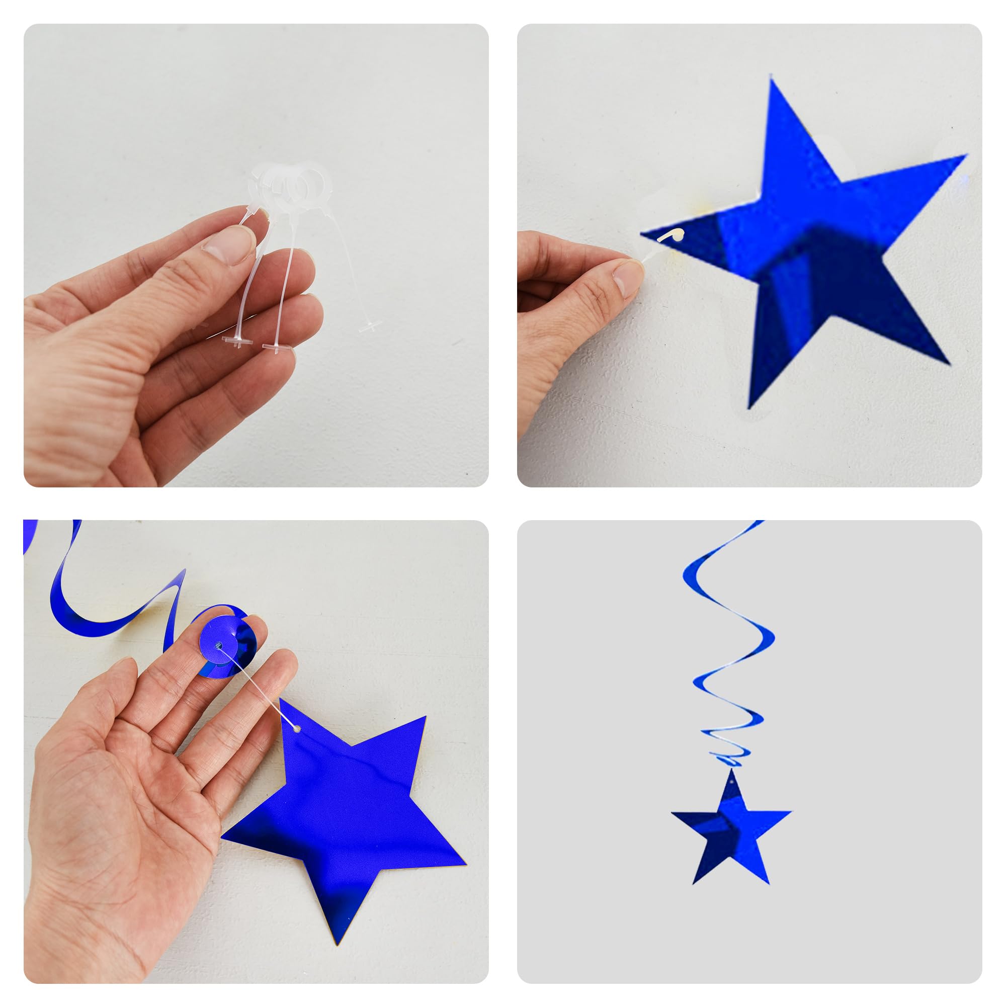 【Package include】A total of 15 pcs hanging swirl decorations, including 15 double swirls and 15 swirls with PVC star. There are 15 strings in total, each of which is connected with a double swirls and a PVC star. Flexible swirls, hanging length can extend to approx 36"/91cm long.
