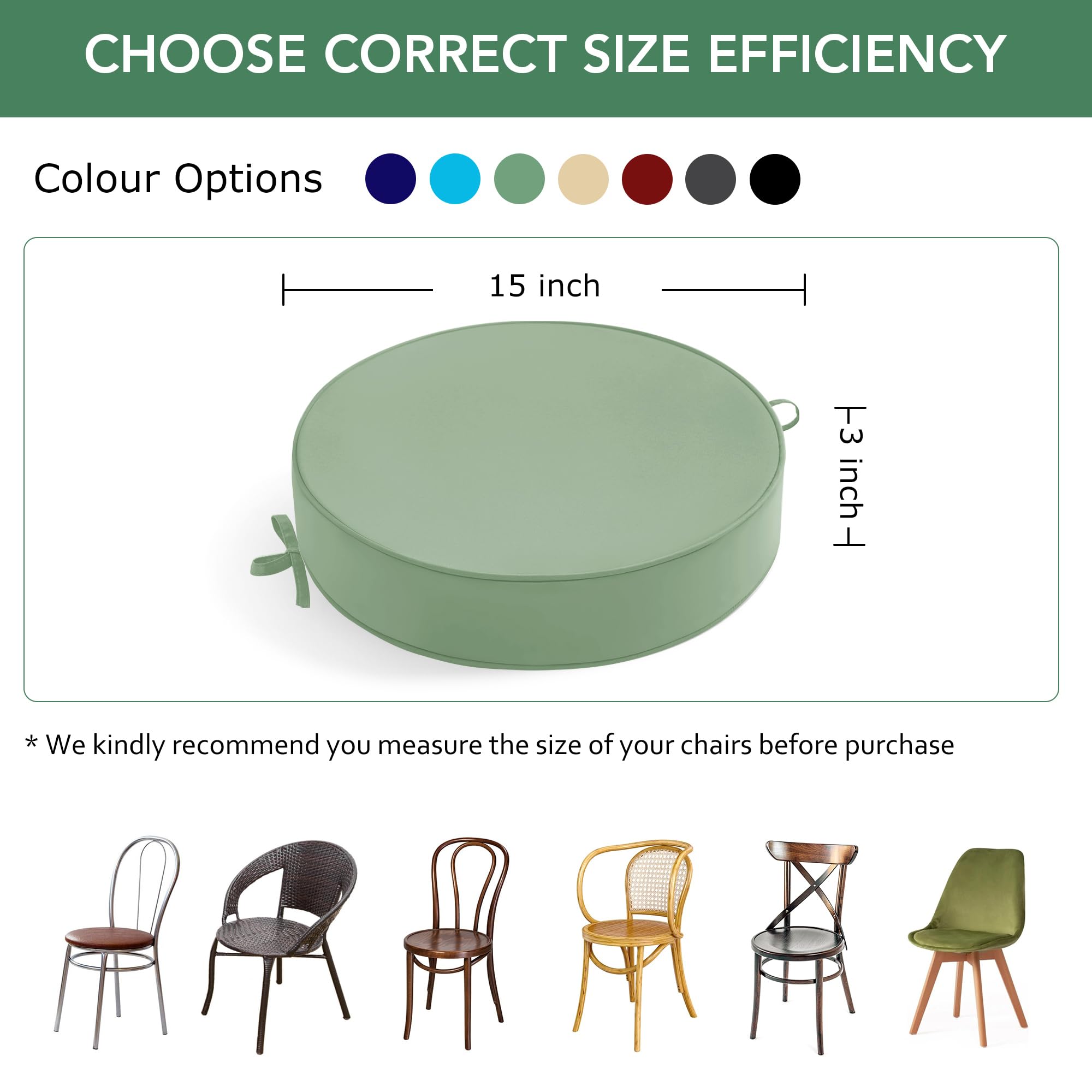 Perfect Fit for Most Chairs: This package includes 4 pieces round chair cushions outdoor, each measuring 15 inches diameter with a 3-inch thickness. Designed for a snug and comfortable fit, they are ideal for various seating options such as garden chairs, dining chair, front porch seats, barrel chairs, wicker furniture, and bistro sets. To ensure the best fit, please measure your furniture before purchasing.