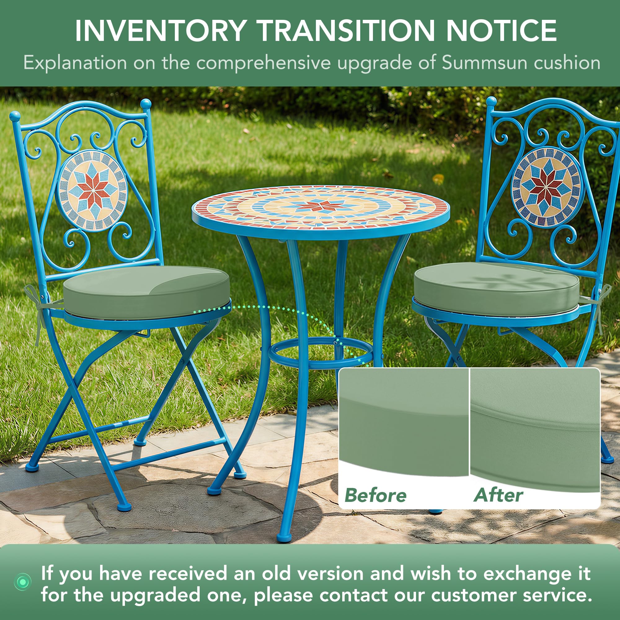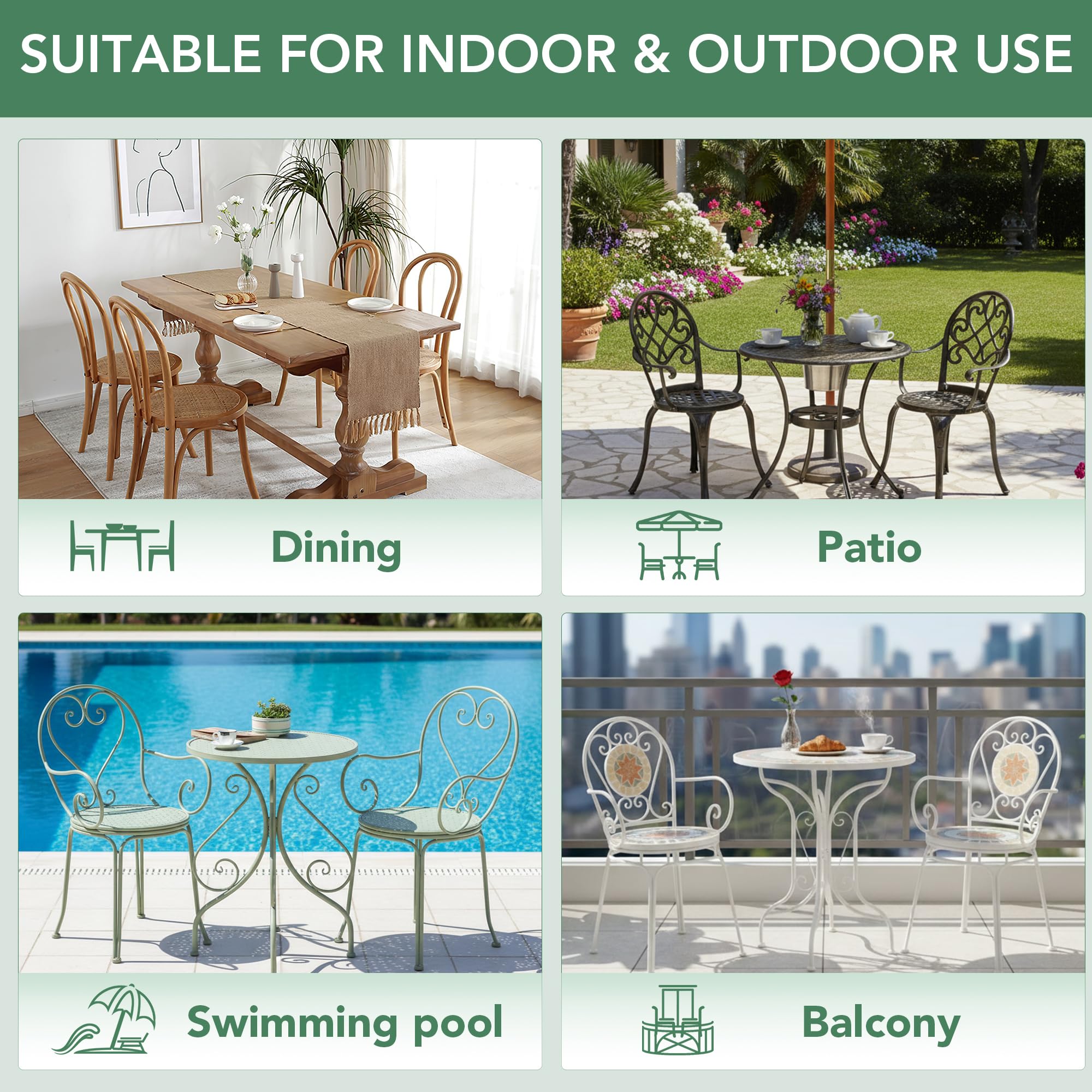 Waterproof & Fade-Resistant: Crafted from high-quality 250gsm polyester fabric, these premium bistro chair cushions are built to withstand the elements. The weather-resistant fabric repels moisture, keeping your outdoor seat cushions dry and protected from rain, while anti-fading technology preserves their vibrant colors even after prolonged sun exposure.