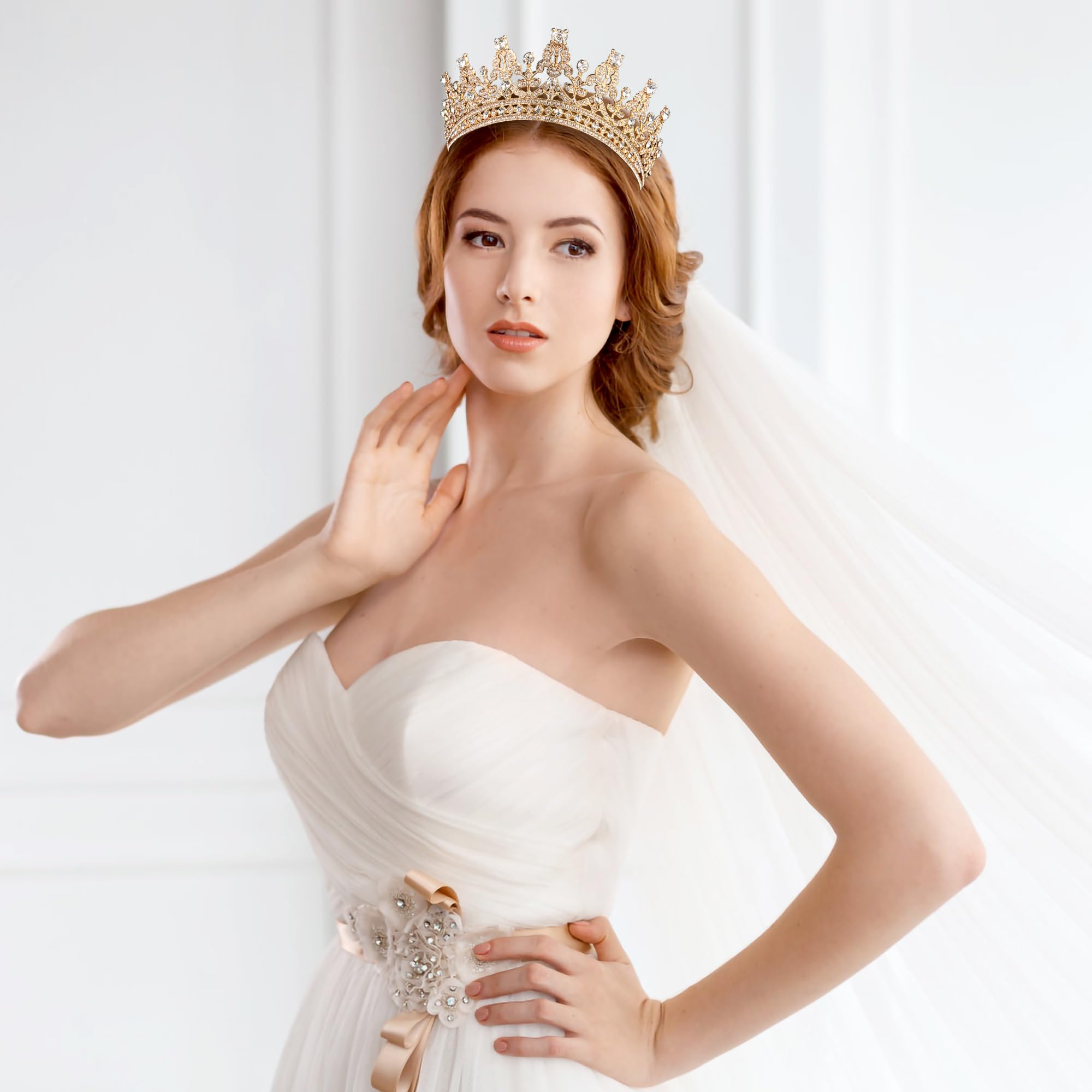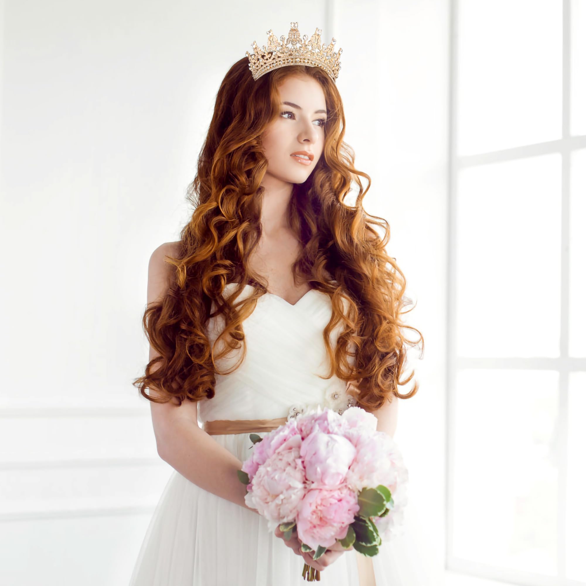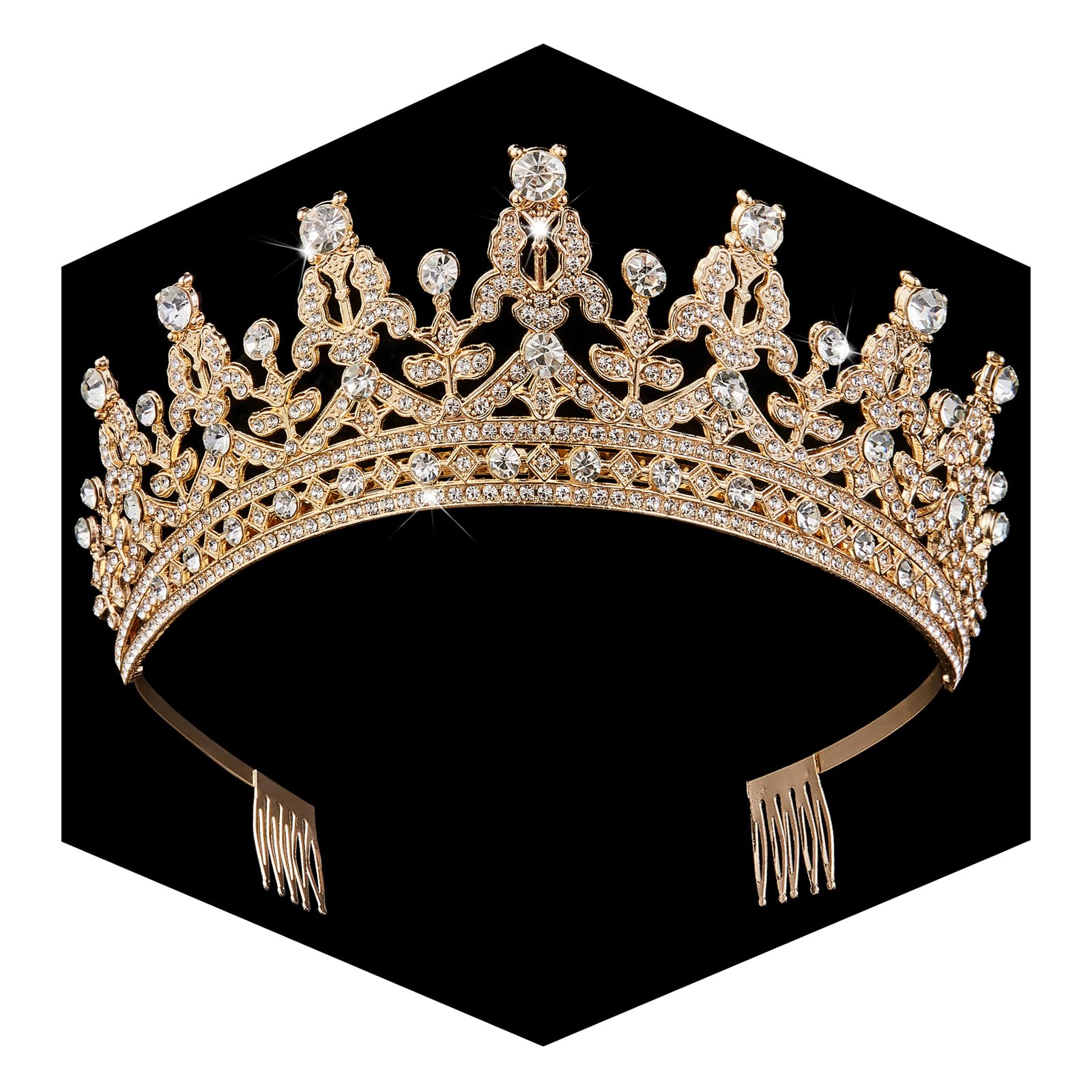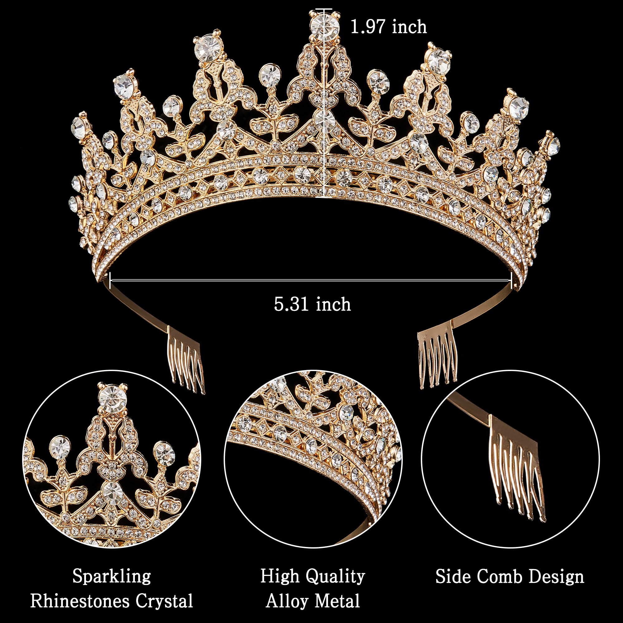 One Size Fits Most: Our crown is gold and measures approximately 1.97 inches (5cm) tall and 5.31 inches (13.5cm) in diameter. Specially designed to fit women's head size, suitable for adults, perfectly fit your charming hairstyle and face shape.