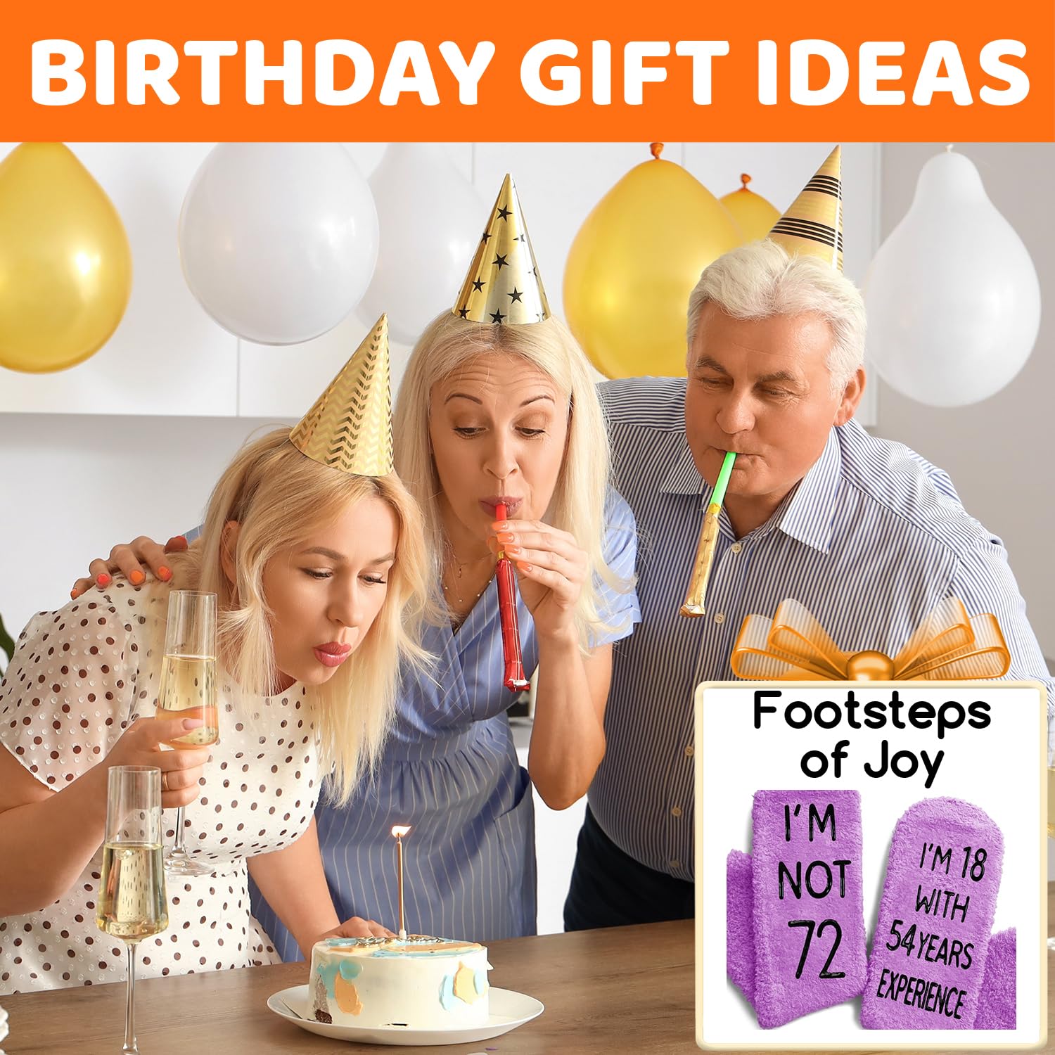 GIFTS FOR HER: Say it with socks - "I'M NOT 72, I'M 18 WITH 54 YEARS EXPERIENCE." These are suitable for any holiday gifts, such as Birthday gifts, White Elephant gifts, Christmas gifts.