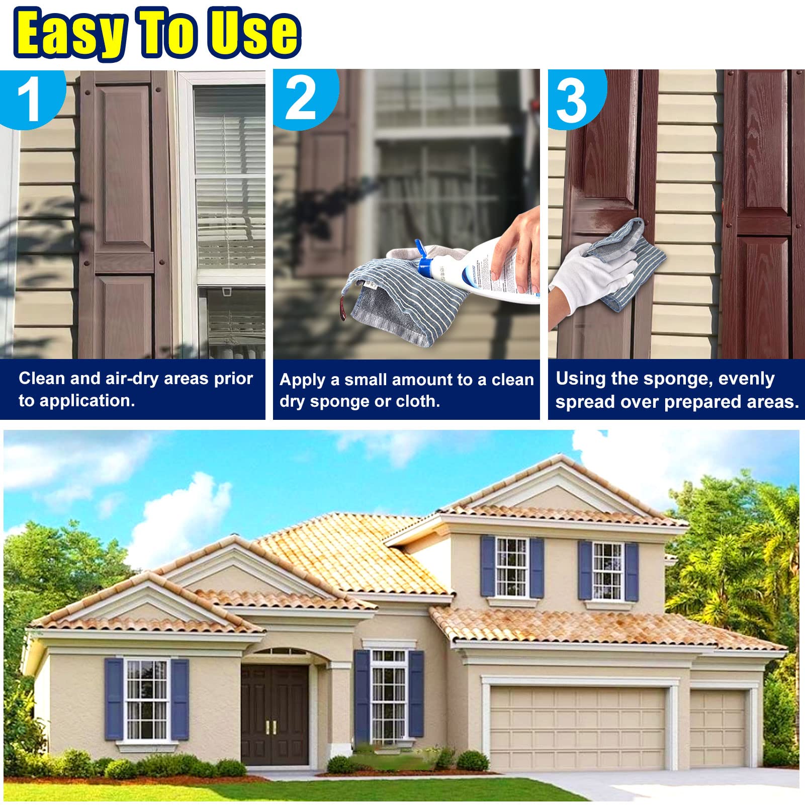 Simple to Used: Easily wipe-on to protect outdoor surface.Tip: Always test on an inconspicuous area first. Apply in a cool, shaded, dry area. never apply to a hot surface.