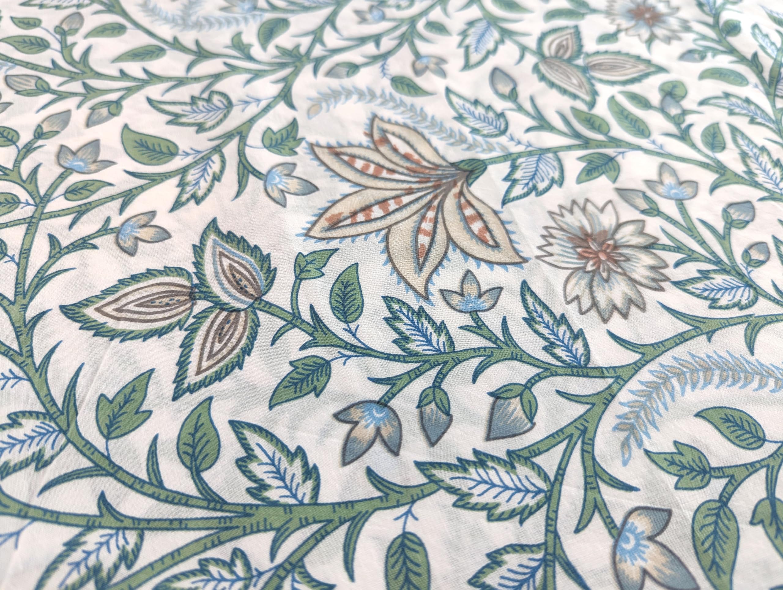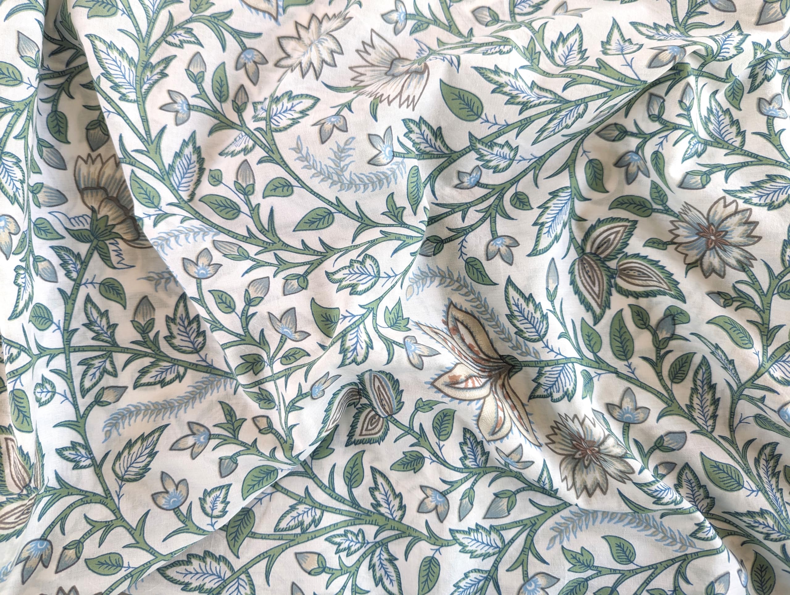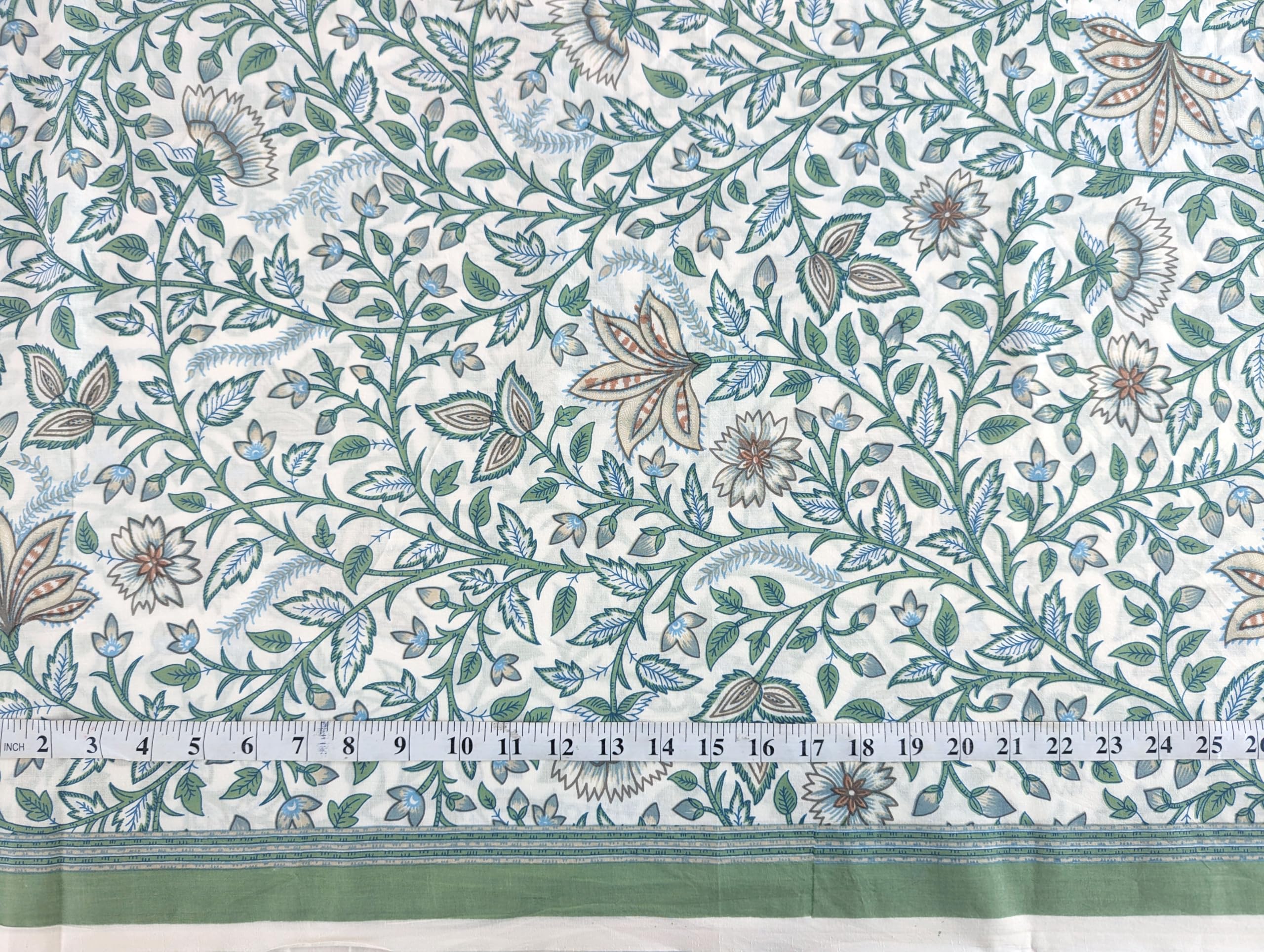 This is a precut piece of 3 yards of an Indian cotton fabric. This is a hand printed fabric using wooden blocks or screens. The width of the fabric is 42 inches. It is a pure cotton yardage and is a thin light weight cotton. Ideal for garments and light home linen. Use this unique and beautiful printed cotton for your next sewing project. If you order 2 quantity, you will receive 2 pieces of cut fabrics of 3 yards each. You will not receive a continuous yardage.