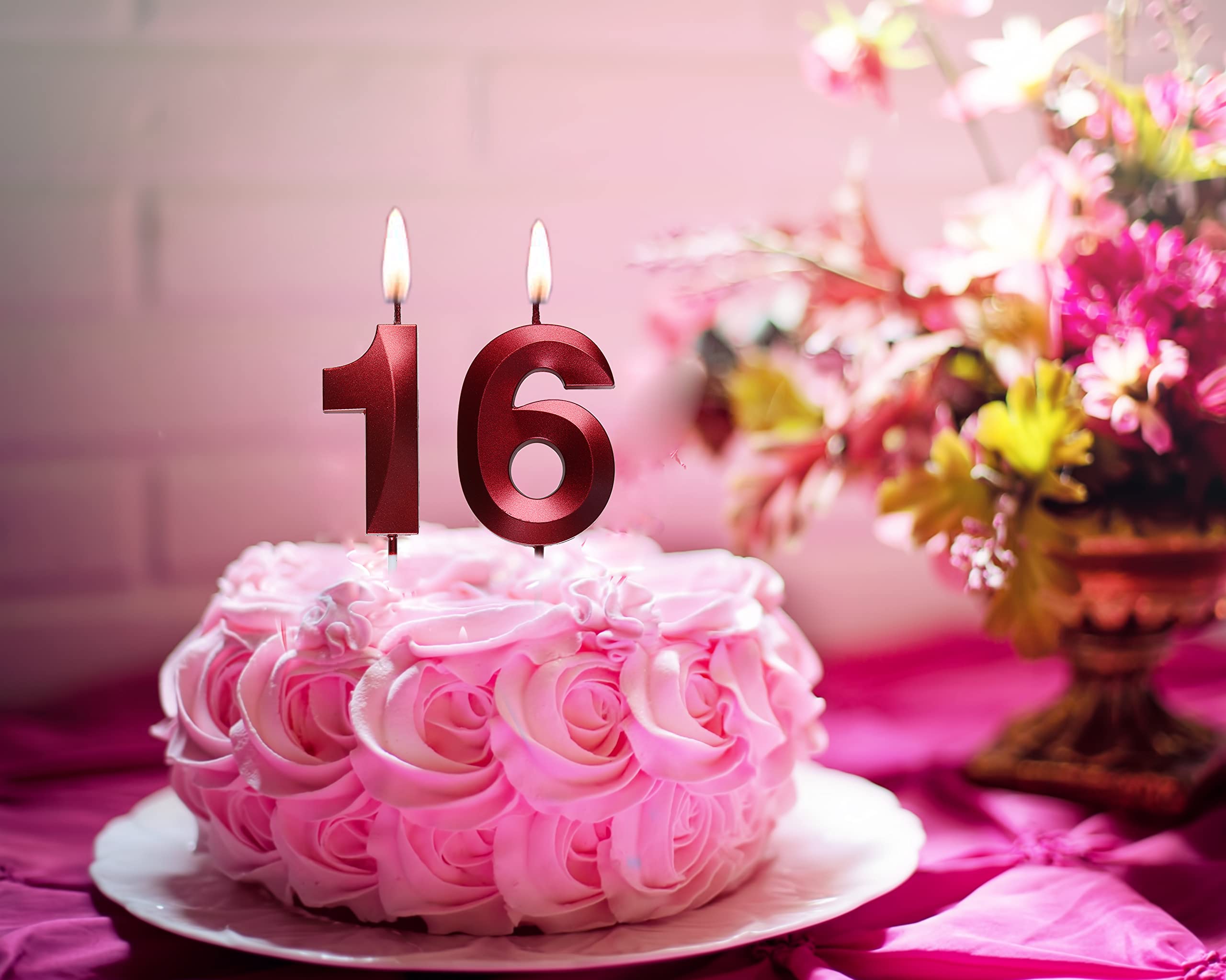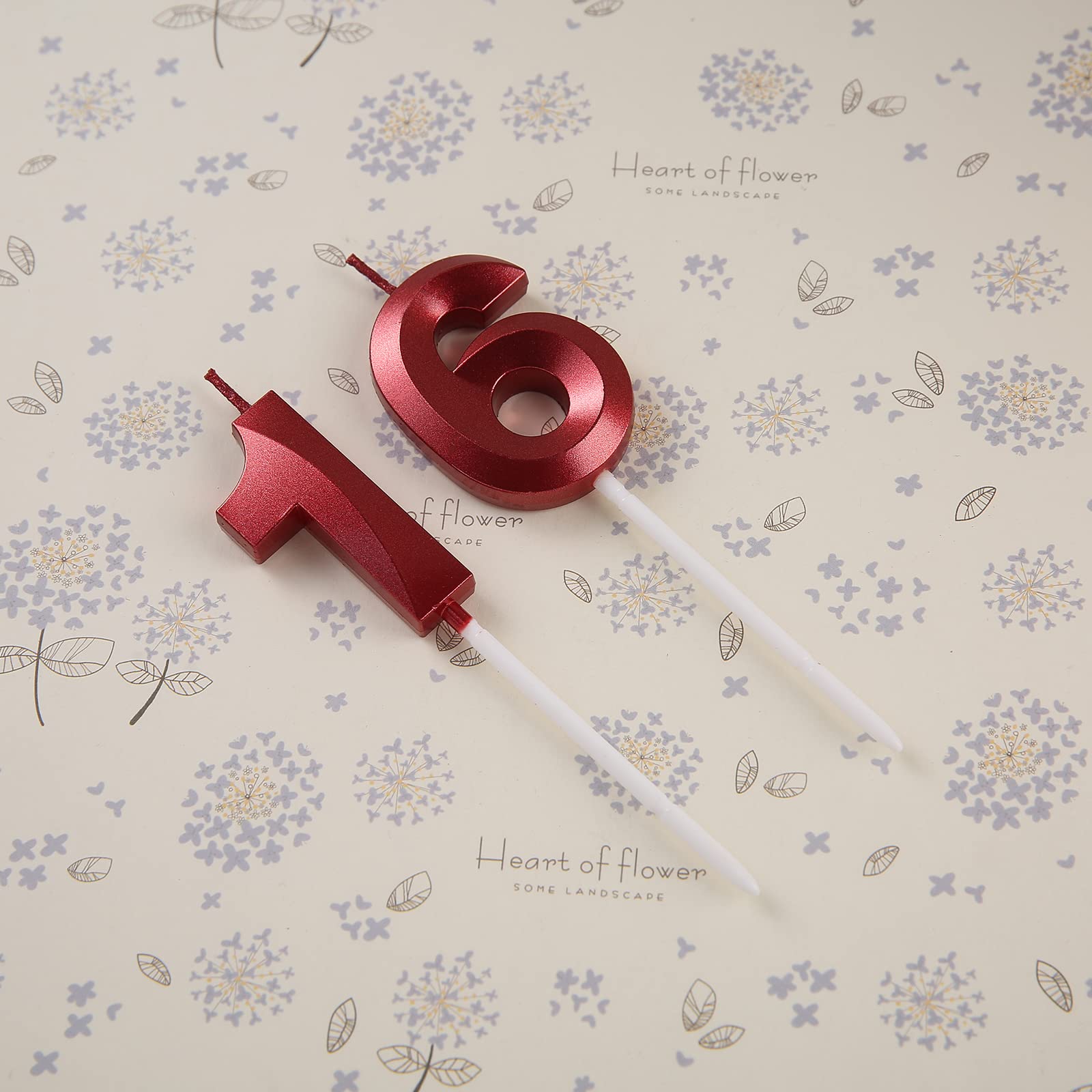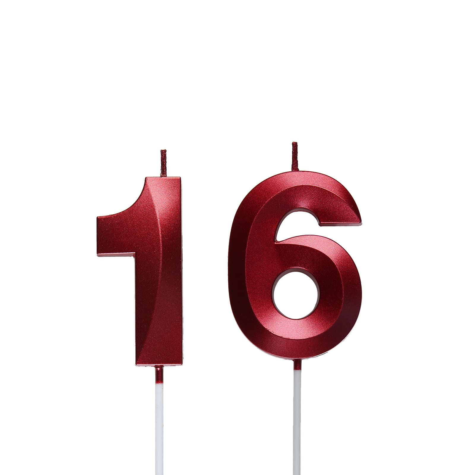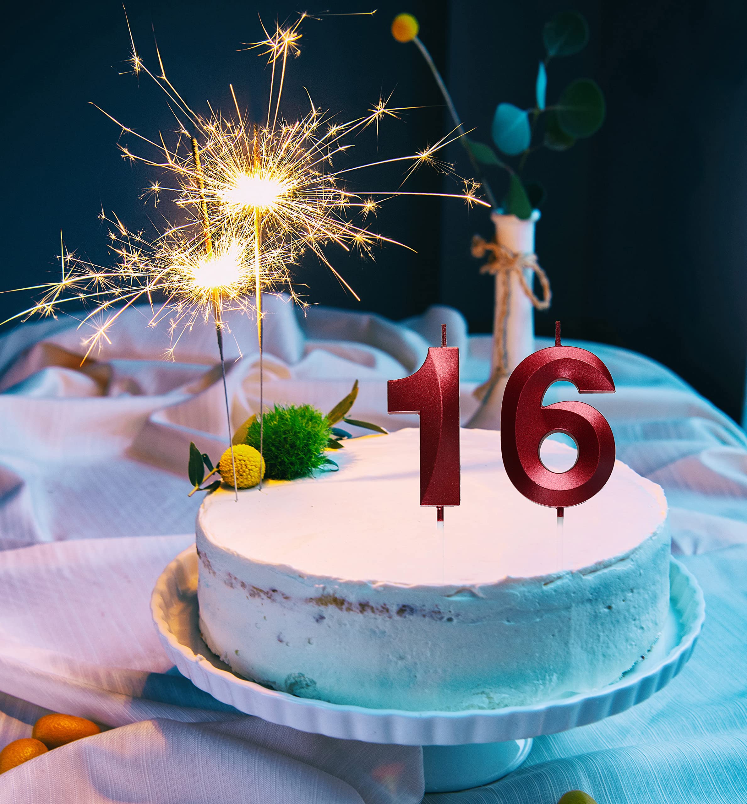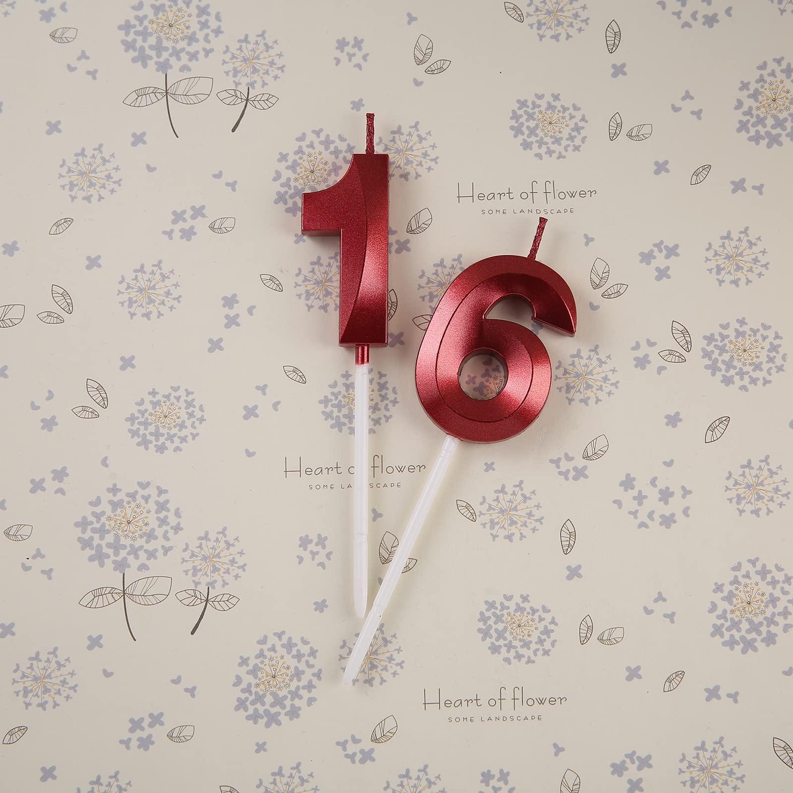 INSTRUCTIONS: Size: Width:1.3 in. Number height: 1.9 in. Total height: 4.8in Color : Glitter Red Material : quality wax ,smokeless and non-toxic Burning Time :approx 4-5 minutes Package included:2 Pcs ,Red Number 16 birthday candles PLEASE NOTE: Please keep the candles in shade away from the fire and make sure the size match to your birthday cakes