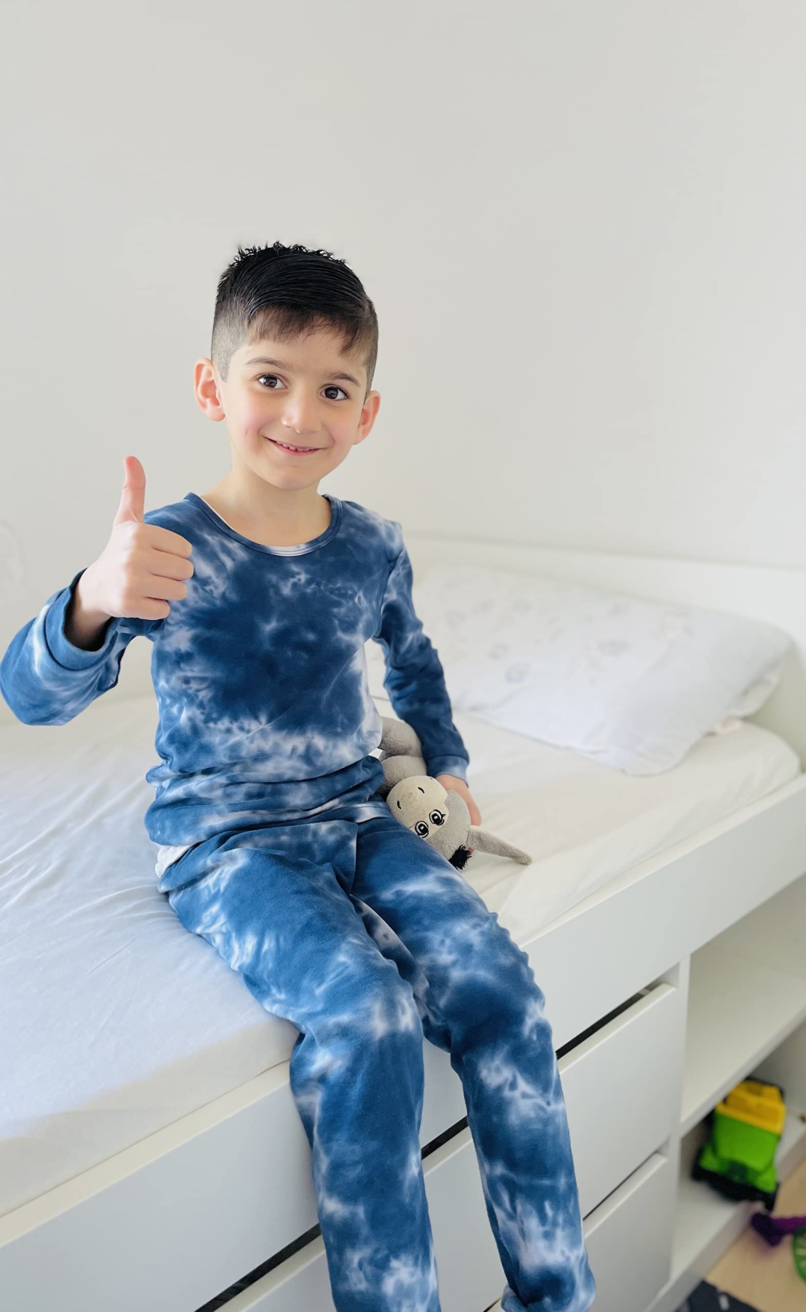 Our hand made tie-dye pajama is slightly thinner than our normal sleepwear. The popularity of our tie-dye products has required us to produce finer organic cotton to achieve the softest outcome after the color process.
