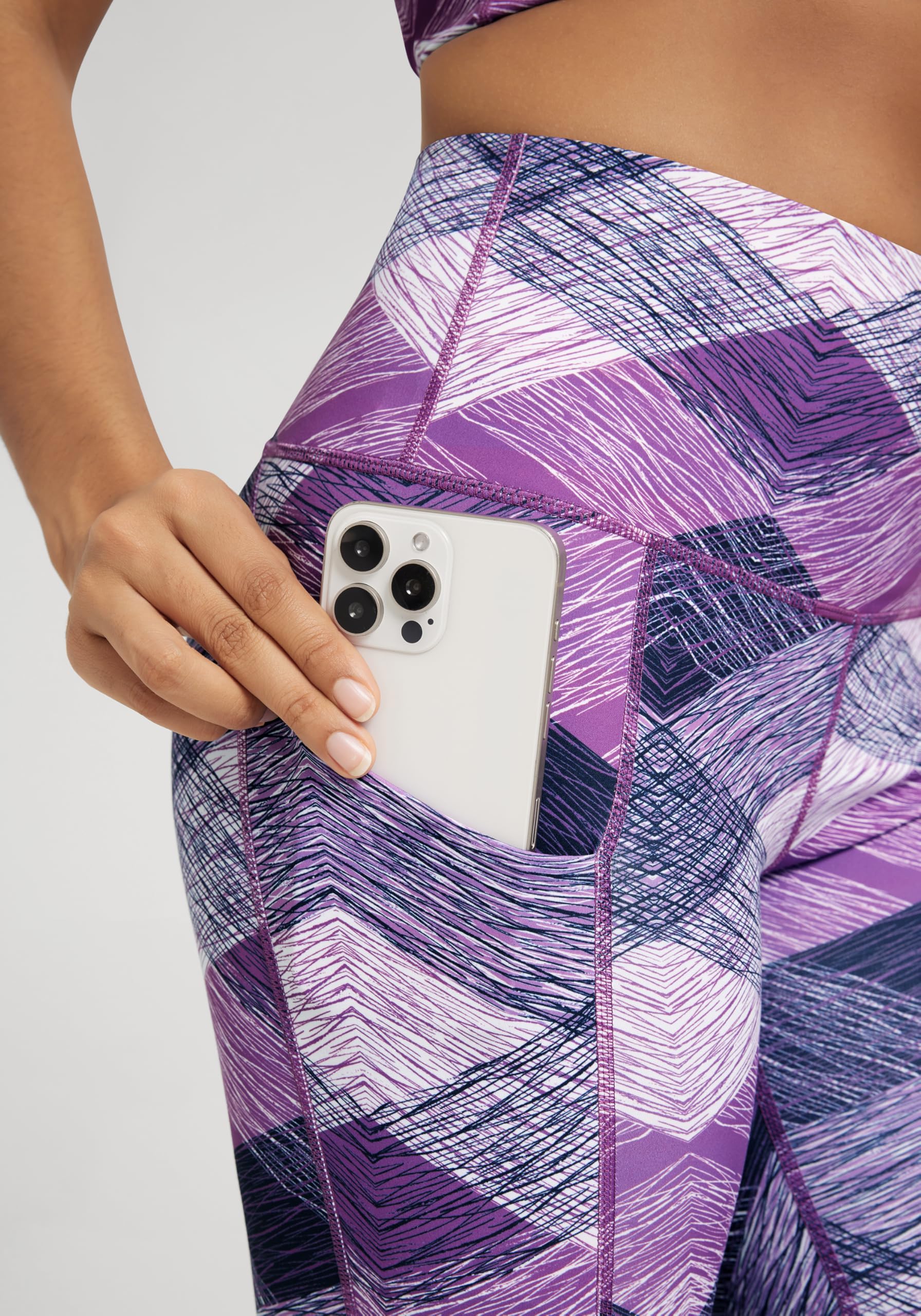 Side Pockets: 2 large side pockets, deep enough to fit a smart phone and keys and it doesn't move around, no more worry about your essentials while workout.