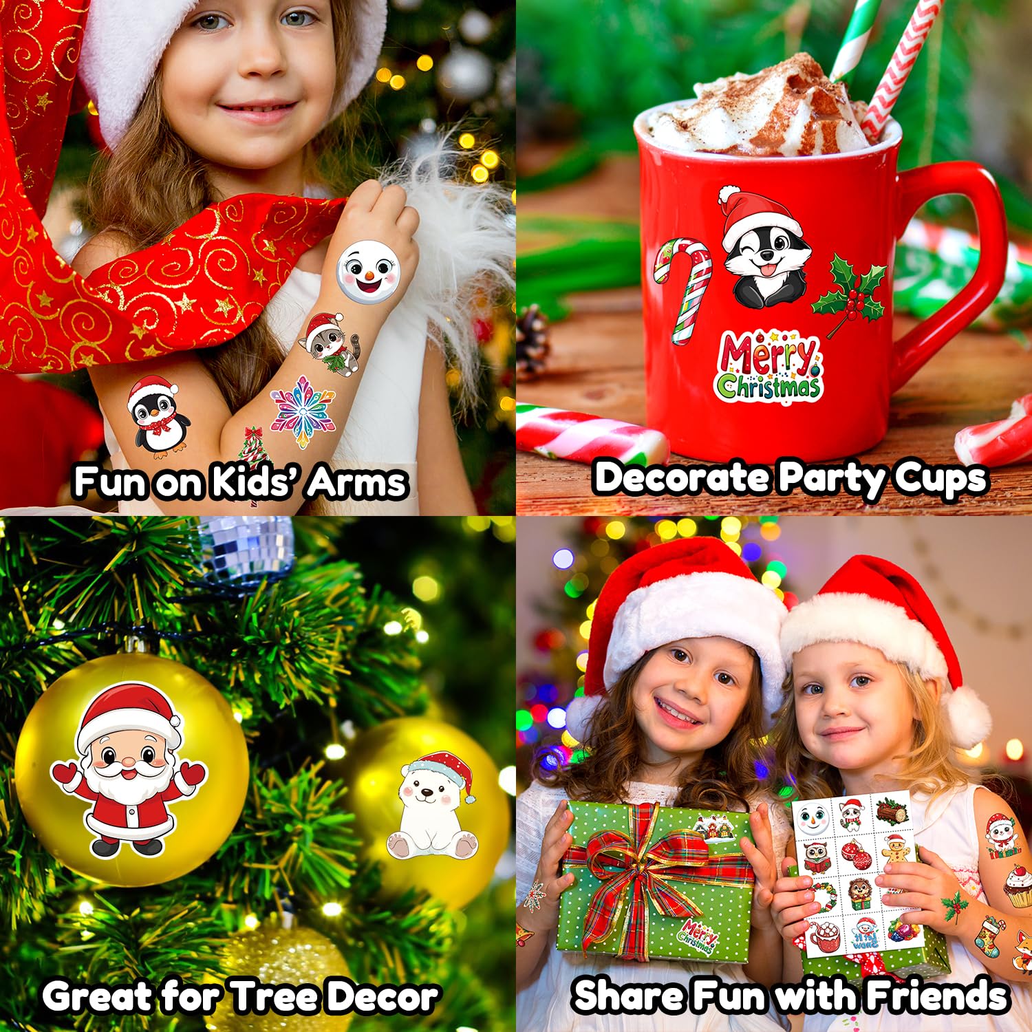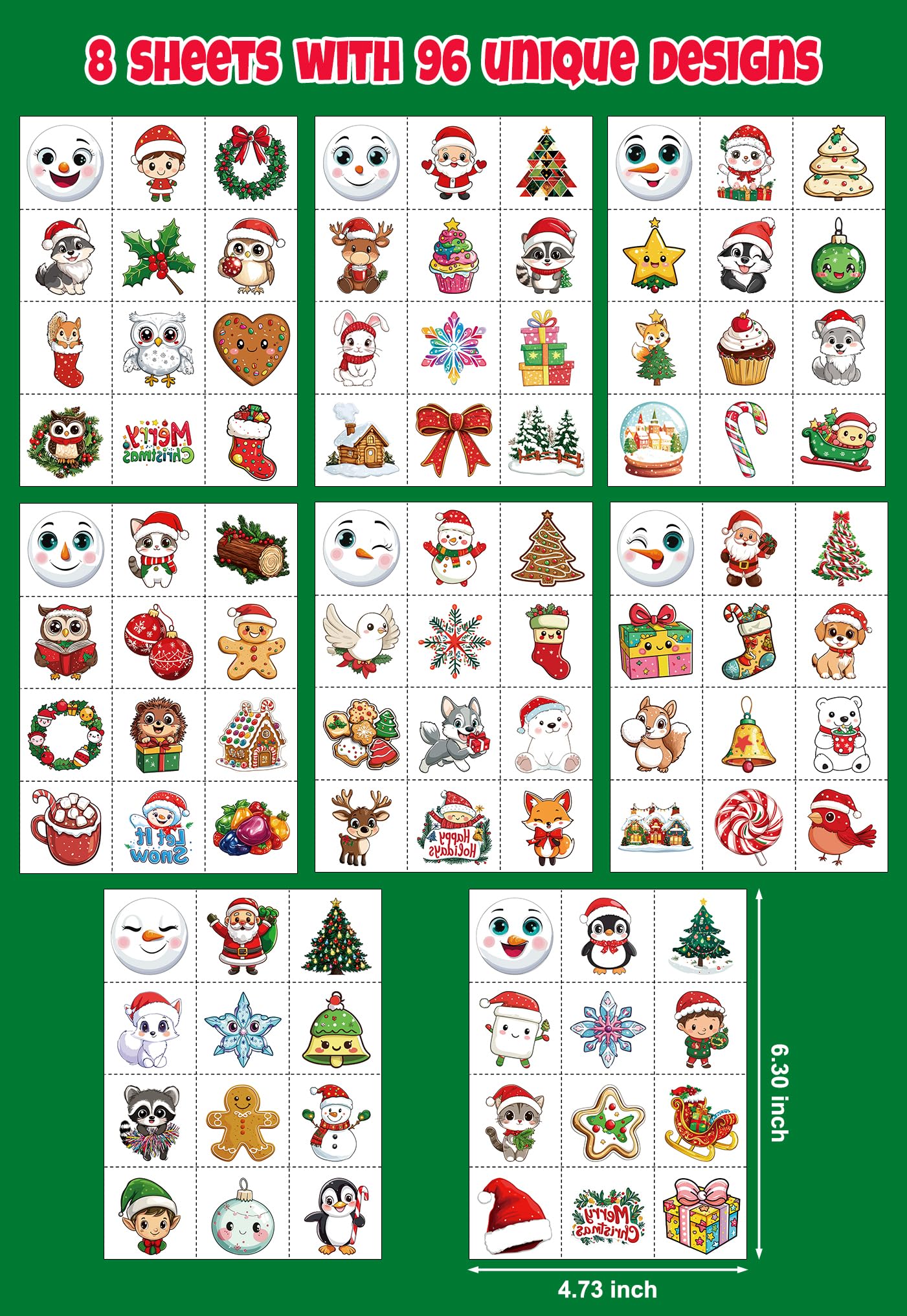 Christmas Tattoos for Kids: You'll receive 96 kinds of Christmas-themed stickers, such as Christmas trees, Christmas socks, snowmen, deer, etc. A variety of designs will be helpful to create a happy Christmas atmosphere decoration, Christmas stocking stuffers for kids