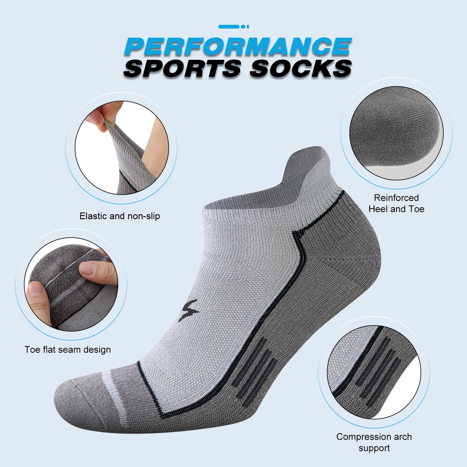 Anti-Slip & Arch Support: Featuring ribbed cuffs and arch support, these athletic socks ensure a secure and comfortable fit. The compression band molds to your foot, keeping the socks in place whether you're running, walking, cycling, working out, or just tackling daily activities