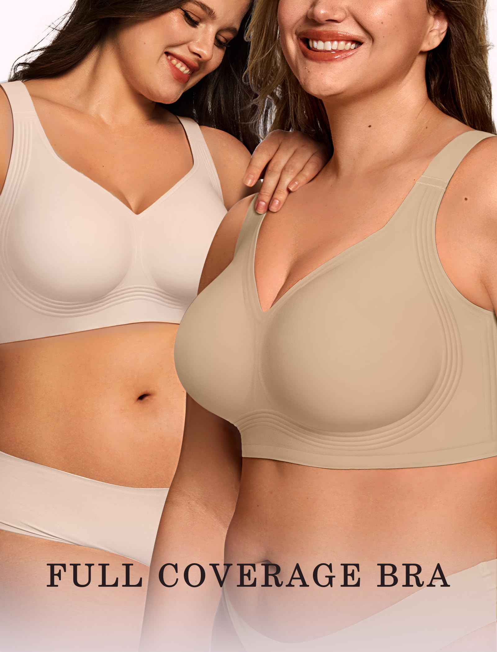 Full Coverage Bras No Underwire - The V neck Bras Designed with no wire to provide a natural relaxed fit while offering great support through 360° jelly band, ensuring all day comfort for women of all ages and all body types. Lightweight bras keep skin cool and dry. The widened elastic band stays securely in place without rolling or shifting, ensuring stability during movement. A perfect combination of freedom and support for everyday wear.