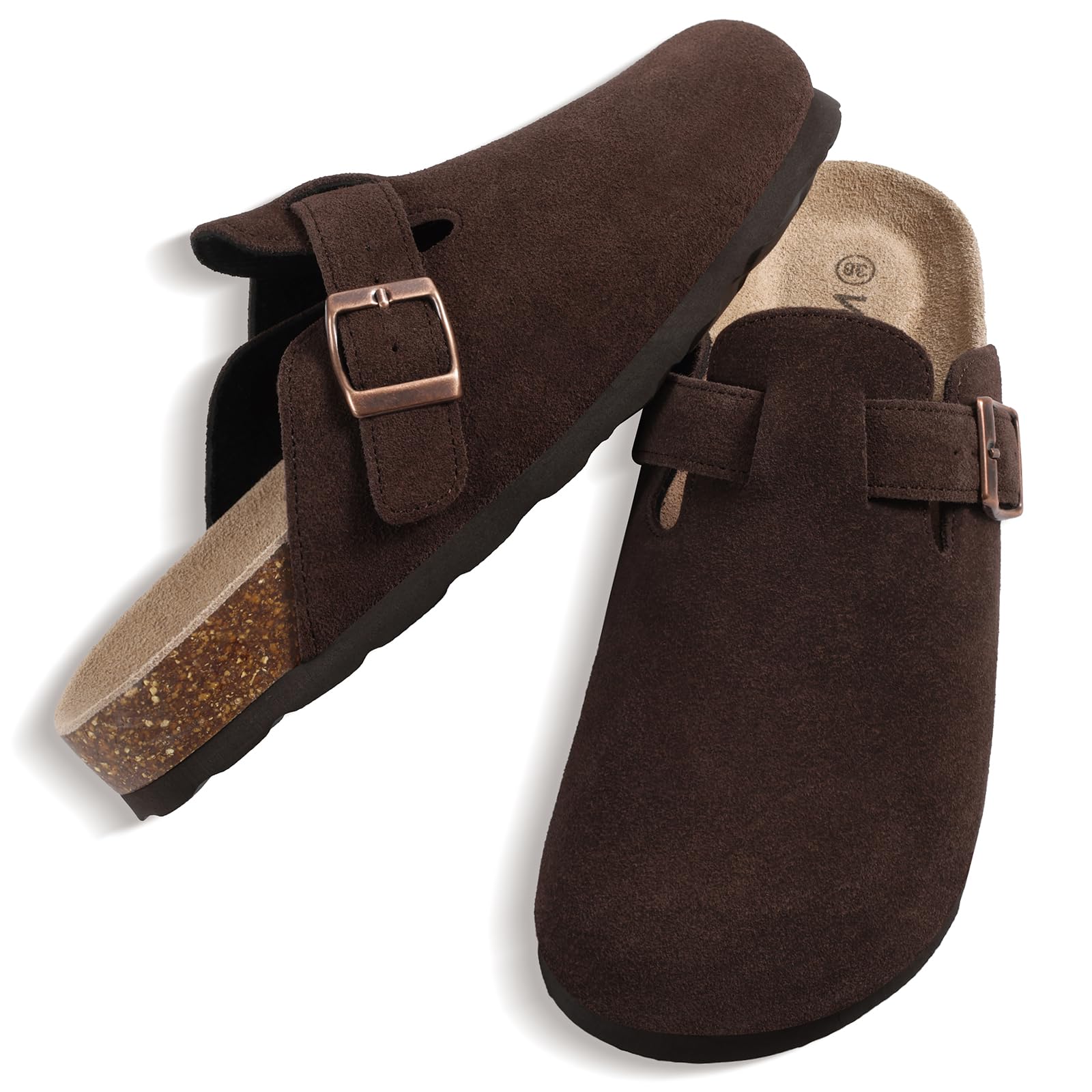 𝗖𝗟𝗔𝗦𝗦𝗜𝗖 𝗖𝗢𝗥𝗞 𝗖𝗟𝗢𝗚𝗦: 100% genuine suede look with adjustable metal buckle straps. They are super flattering with spring/summer outfits. Perfect all seasons wardrobe staple. You will get so many compliments when you wear them