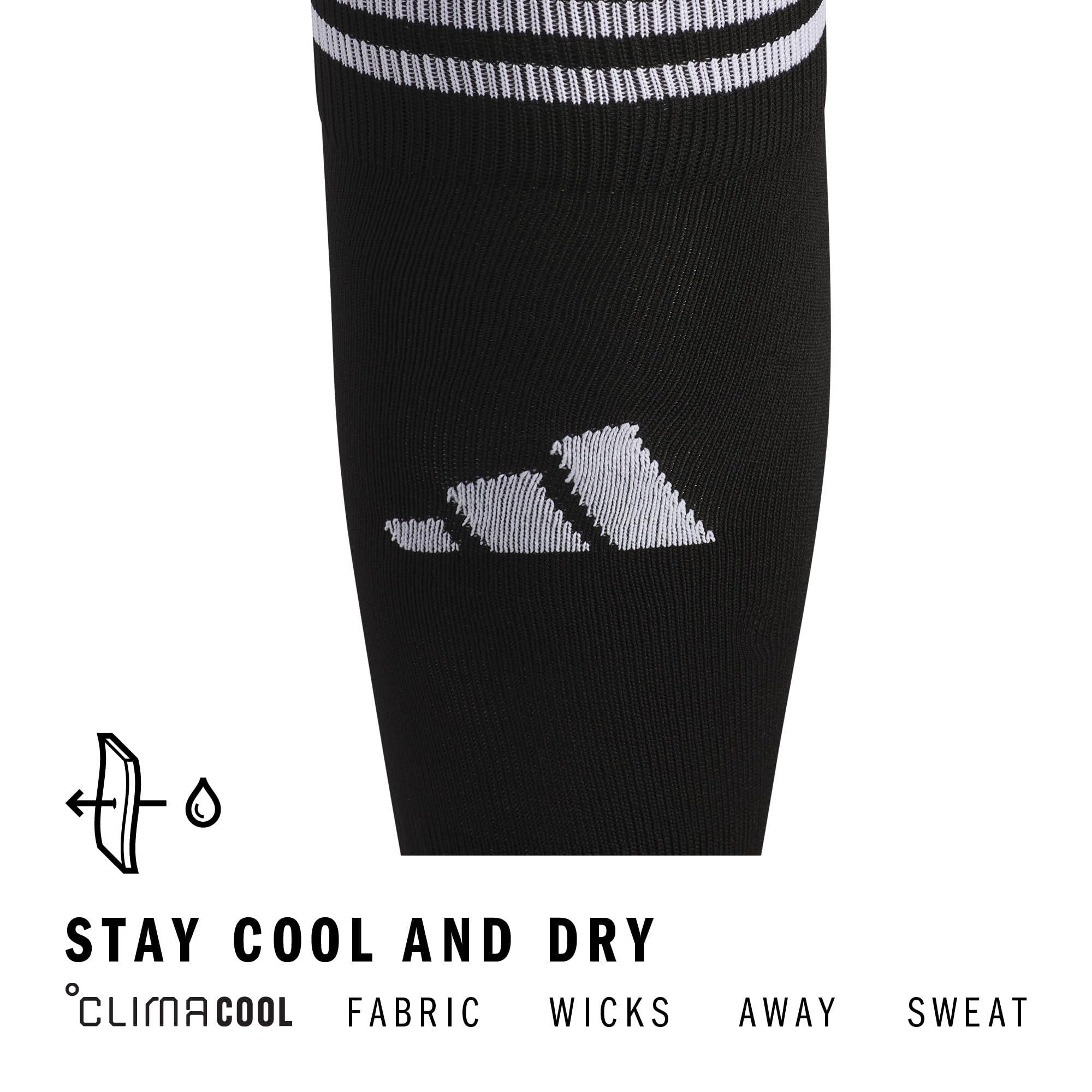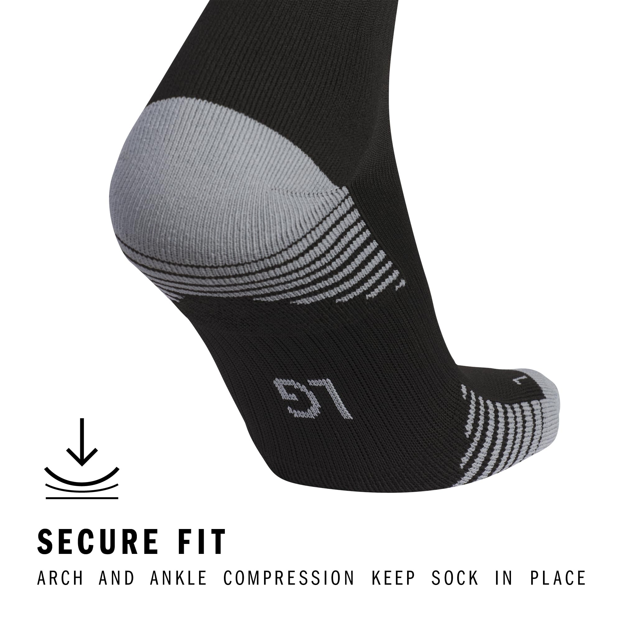 Description Get ready for the game with these adidas soccer socks, designed to elevate your performance on the field. These womens and mens socks offer moisture-wicking yarn to keep your feet dry from sweat. The classic 3-Stripe finish at the welt and center front Badge of Sport logo add a touch of style that's synonymous with adidas soccer. Whether you’re in the midst of a competitive match or a casual game, cushioning at the heel and toe provides the shock absorption you need. The adidas Copa Zone Cushion 5.0 socks feature compression for a secure fit and additional support. These womens and mens compression socks include arch and ankle support, providing stability. The airy mesh and lightweight construction offer a close fit and excellent ball touch, making them ideal running socks for men or women who seek both comfort and performance. These over-the-calf socks offer the classic fit and protection you'd expect. Perfect for both casual use and high-intensity activities, these socks are a versatile addition to any athlete’s wardrobe. Experience the superior quality and functionality of adidas soccer socks.