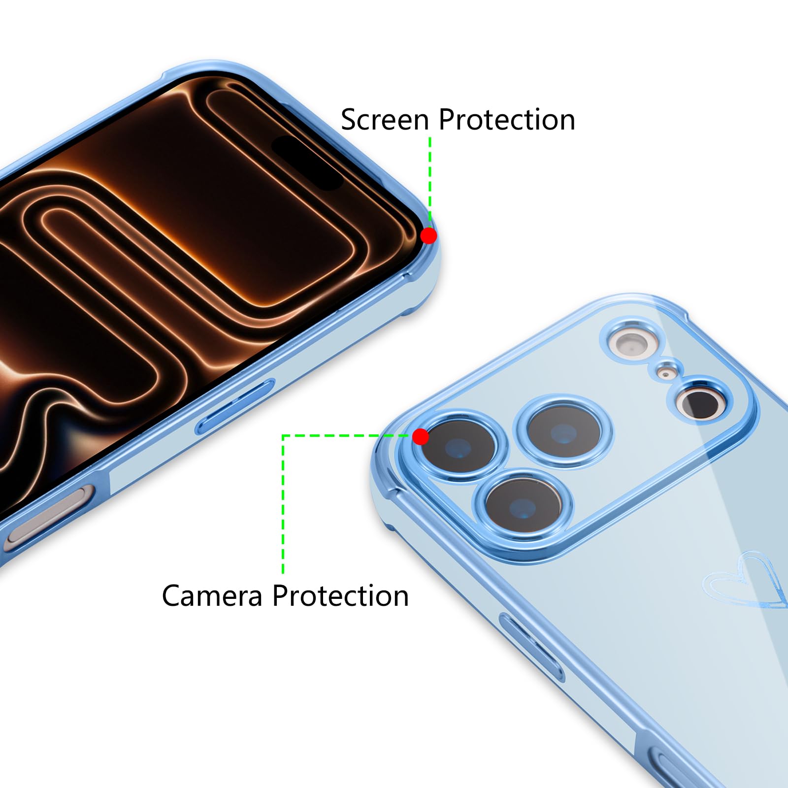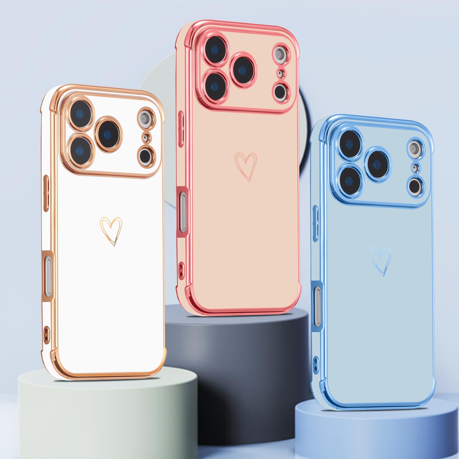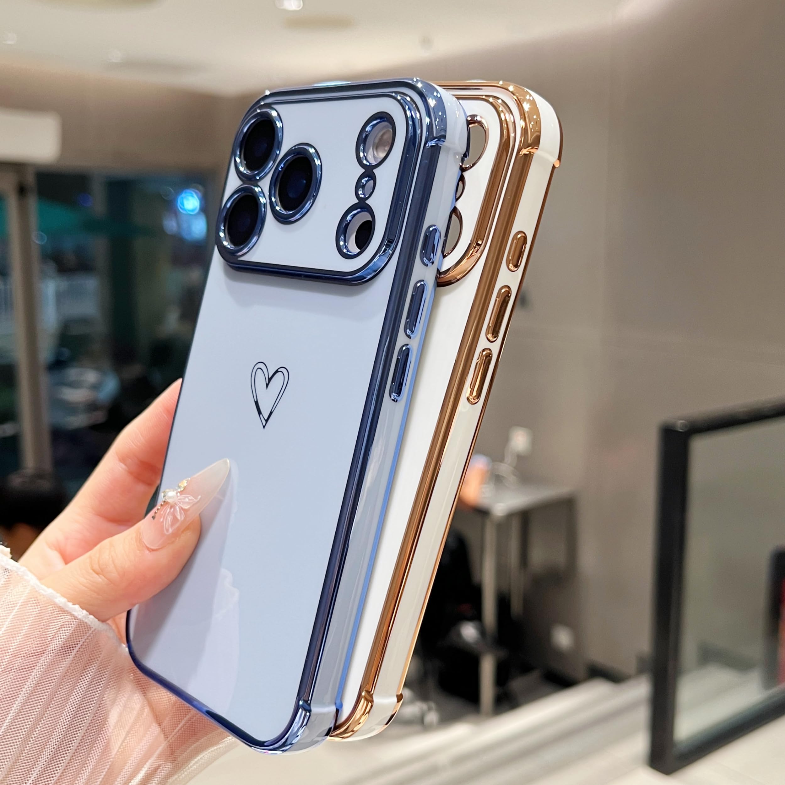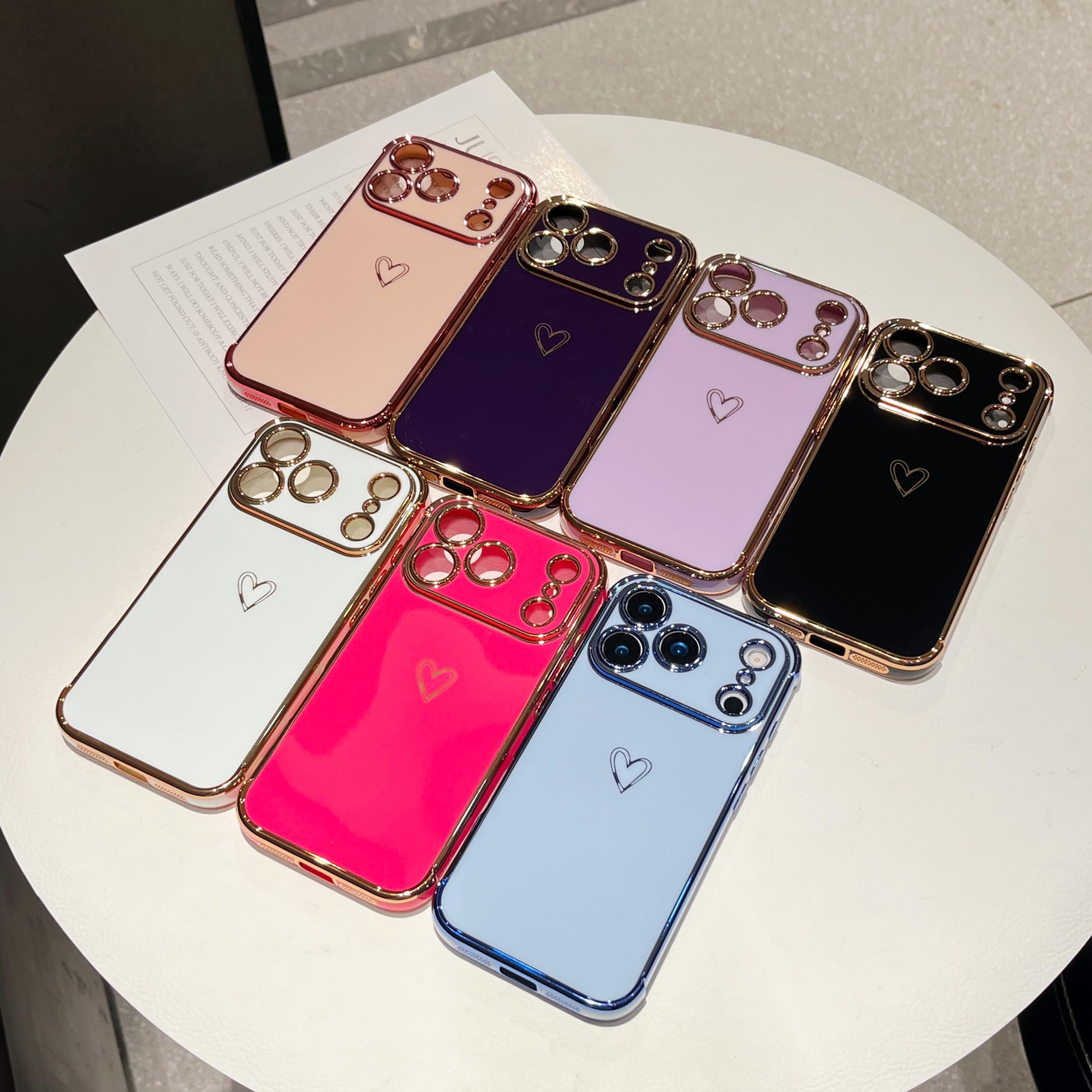 【Perfect Gift】- The combination of electroplating technology and simple love patterns makes your case for iPhone 17 Pro Max more fashionable and attractive, which is perfect for Christmas,Valentine and other holiday gifts for friends,daughters and wife