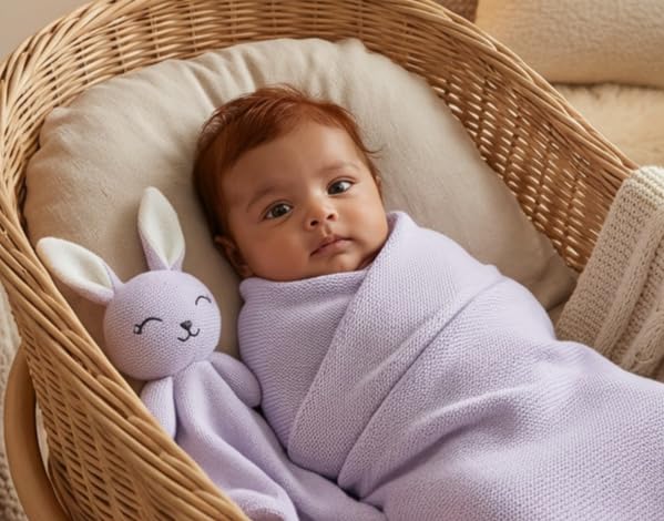 Soft, Breathable Everyday Comfort: The lightweight knit blanket provides a cozy balance of warmth and breathability, making it perfect for cuddling, stroller rides, tummy time, or everyday use.