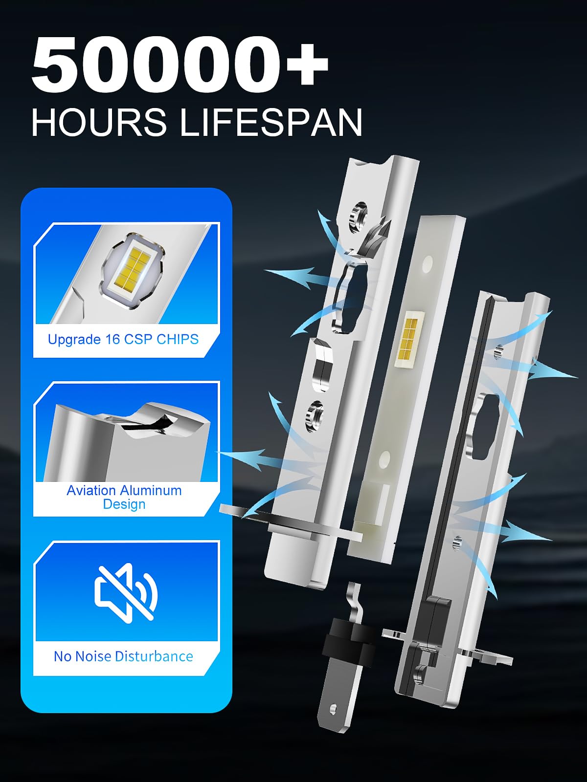 Silent Fanless Design:The innovative solid-state construction of our H1 fog light bulbs eliminates moving parts for vibration-free performance. Enjoy complete silence while driving - a premium feature that removes the distracting hum of traditional cooling fans while maintaining optimal performance