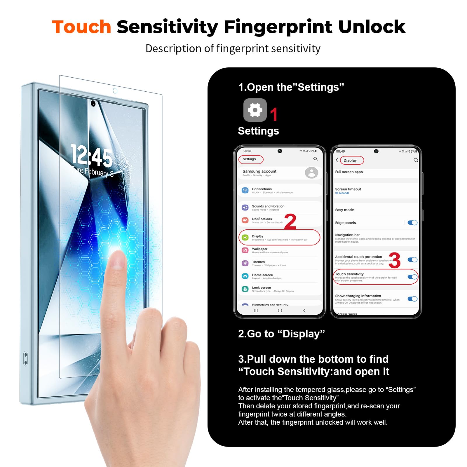 HD Tempered Glass Screen Protector: 0.33mm thin with 99% clarity and oleophobic coating.Features edge-to-edge coverage,bubble-free installation kit and 9H hardness against scratches