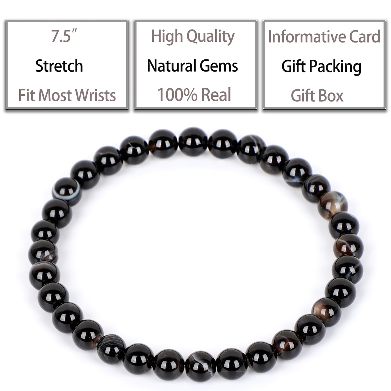 High Quality Beaded Bracelet: The bracelet is made of 6mm natural genuine Evil Eye Agate beads and has been carefully selected manually one by one.