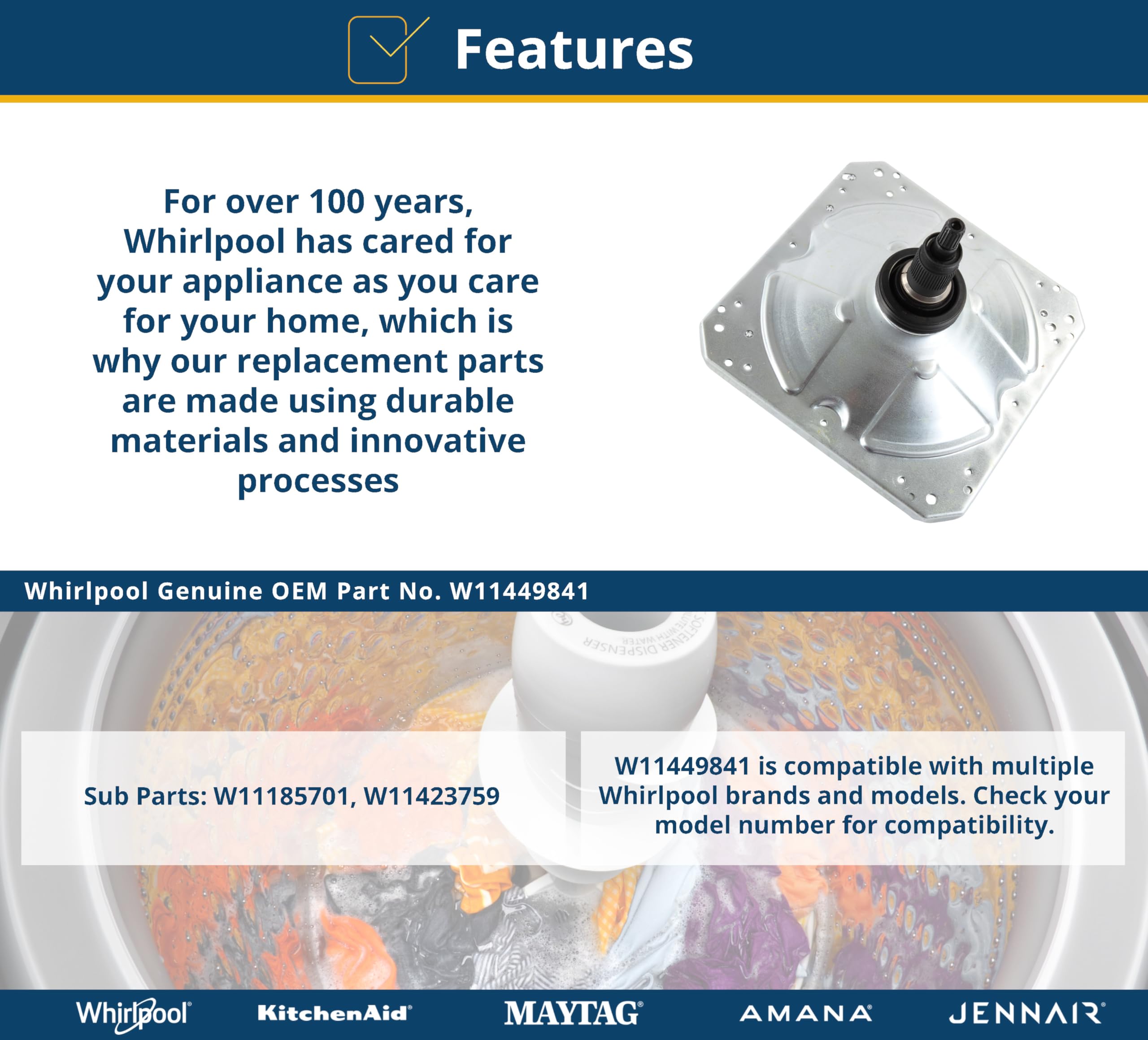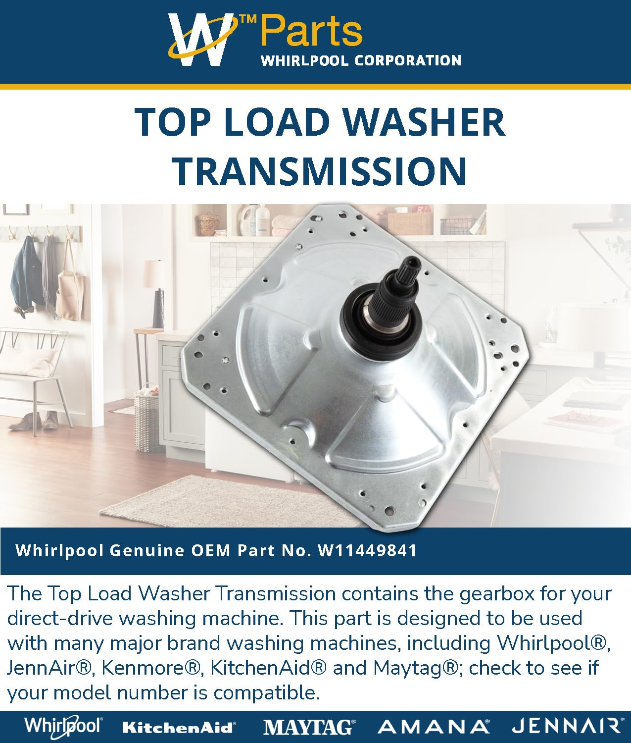 REPLACEMENT PART NUMBERS: W11449841 Top Load Washer Transmission replaces the part number W11185701, and W11423759