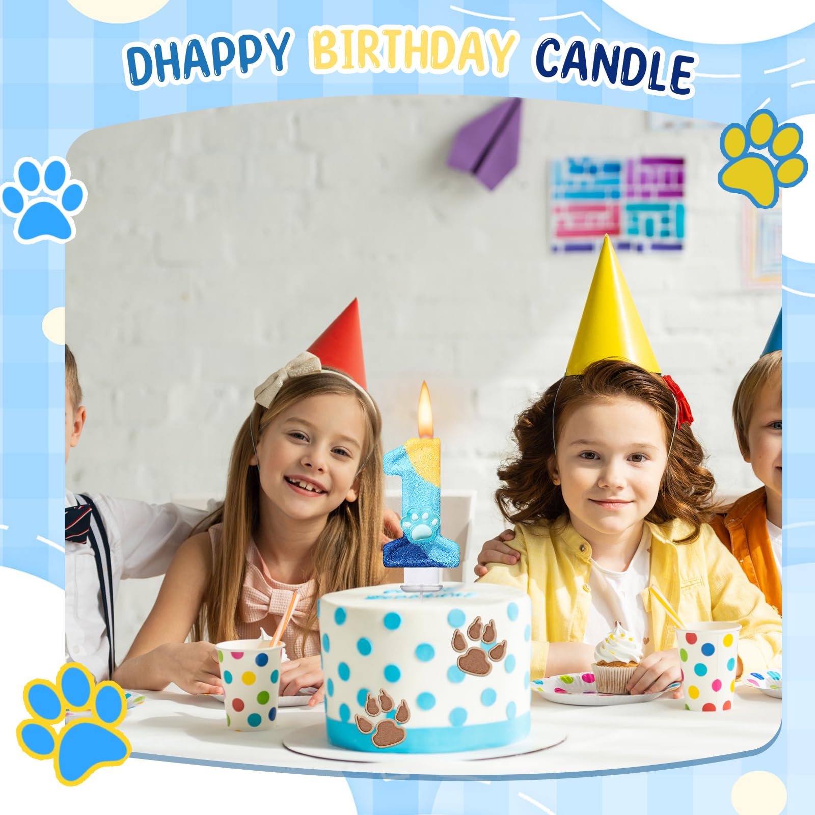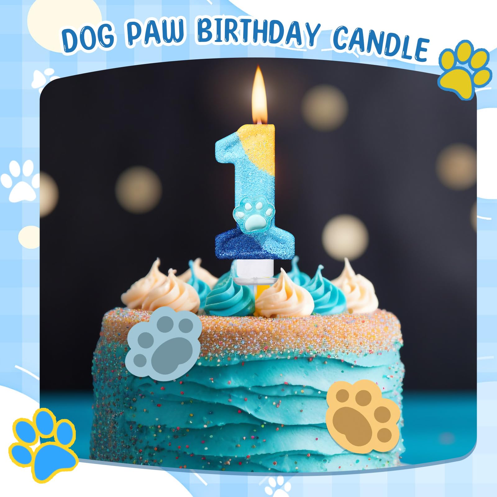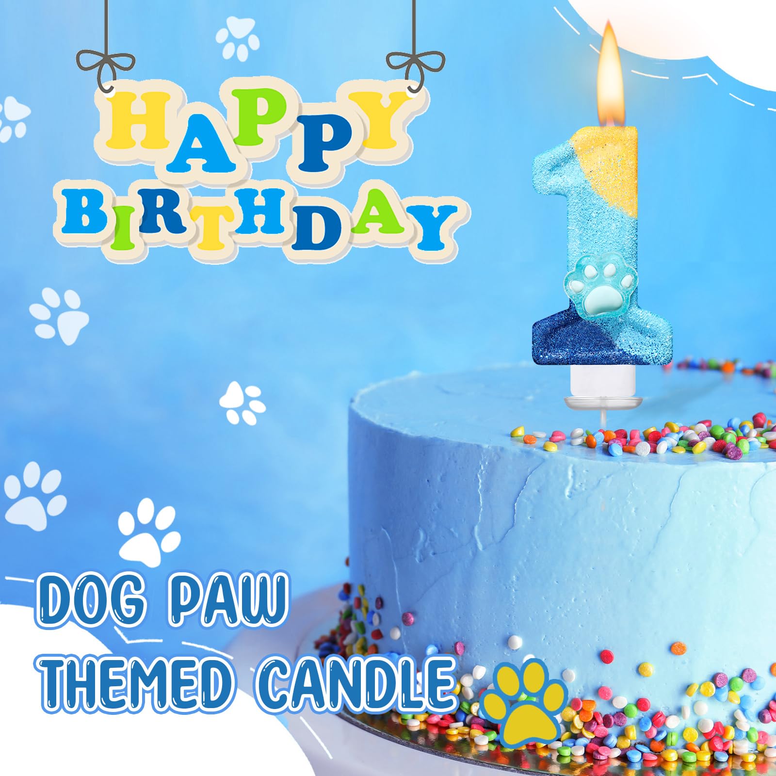 Dog paw Theme: embellished with a delightful blue dog paw first birthday decor, this blue candle stands out, adding a cute and eye catching effect to the party decor; The vivid blue and green colors provide an adorable decorative touch and enhance the sweet atmosphere of your girl's party