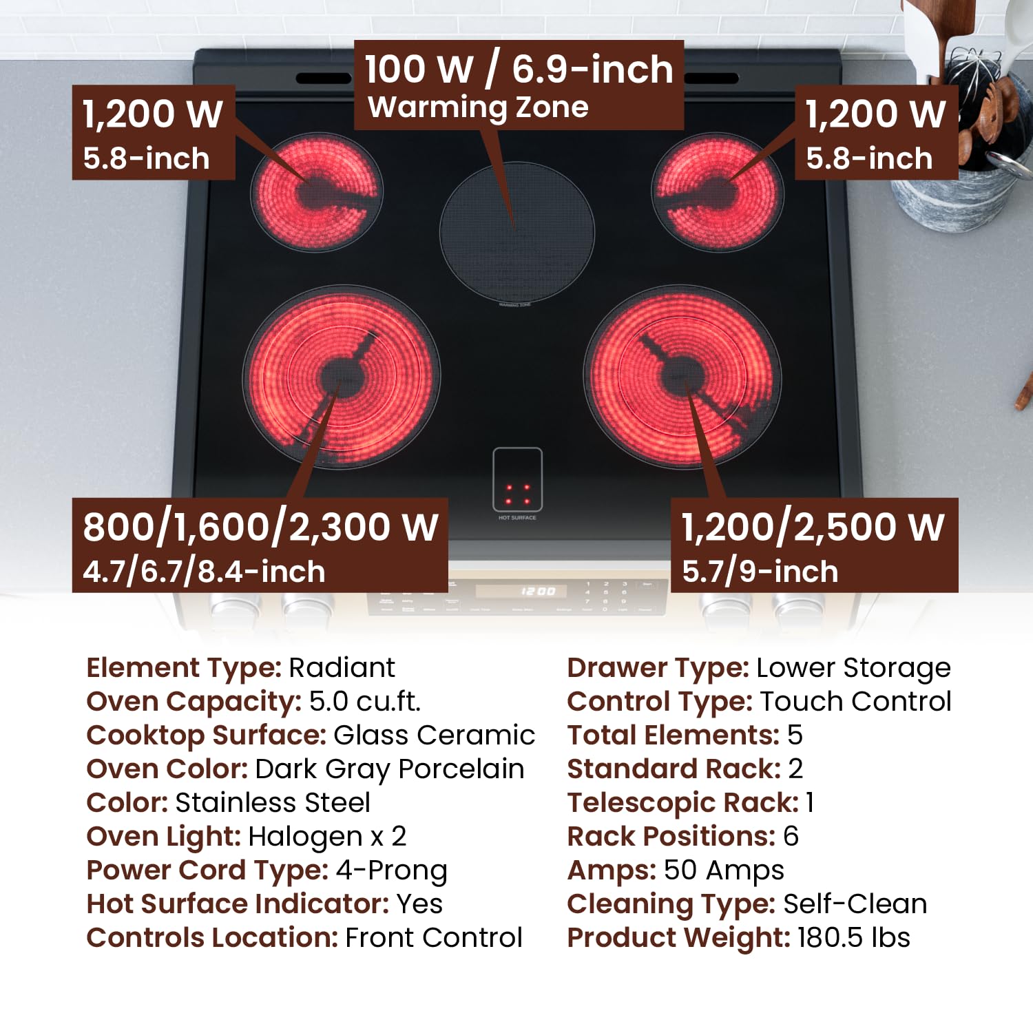 RADIANTGLOW INFRARED BURNERS: Our electric burners use our advanced RadiantGlow infrared technology to quickly heat up your cookware, providing fast and efficient cooking results. And with the sleek and modern design of our RadiantGlow burners, your range will clean up easily and look great in any kitchen.