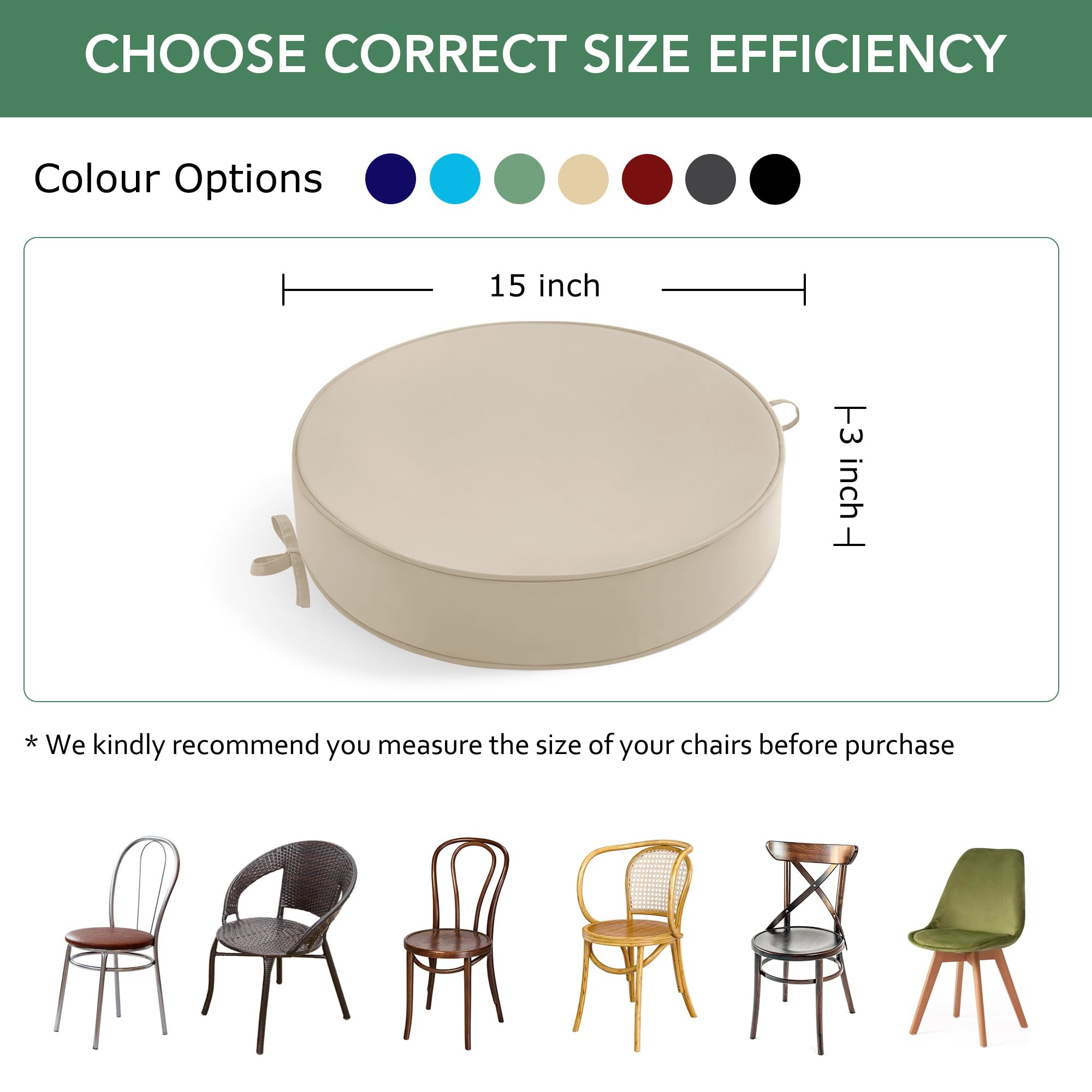 Perfect Fit for Most Chairs: This package includes 4 pieces round chair cushions outdoor, each measuring 15 inches diameter with a 3-inch thickness. Designed for a snug and comfortable fit, they are ideal for various seating options such as garden chairs, dining chair, front porch seats, barrel chairs, wicker furniture, and bistro sets. To ensure the best fit, please measure your furniture before purchasing.