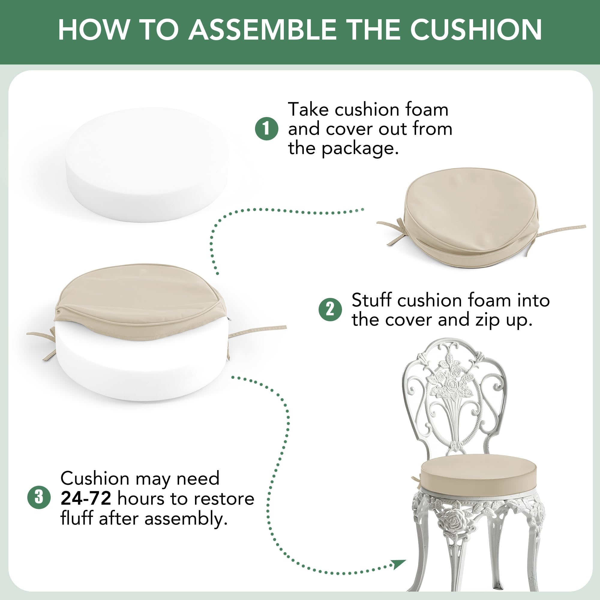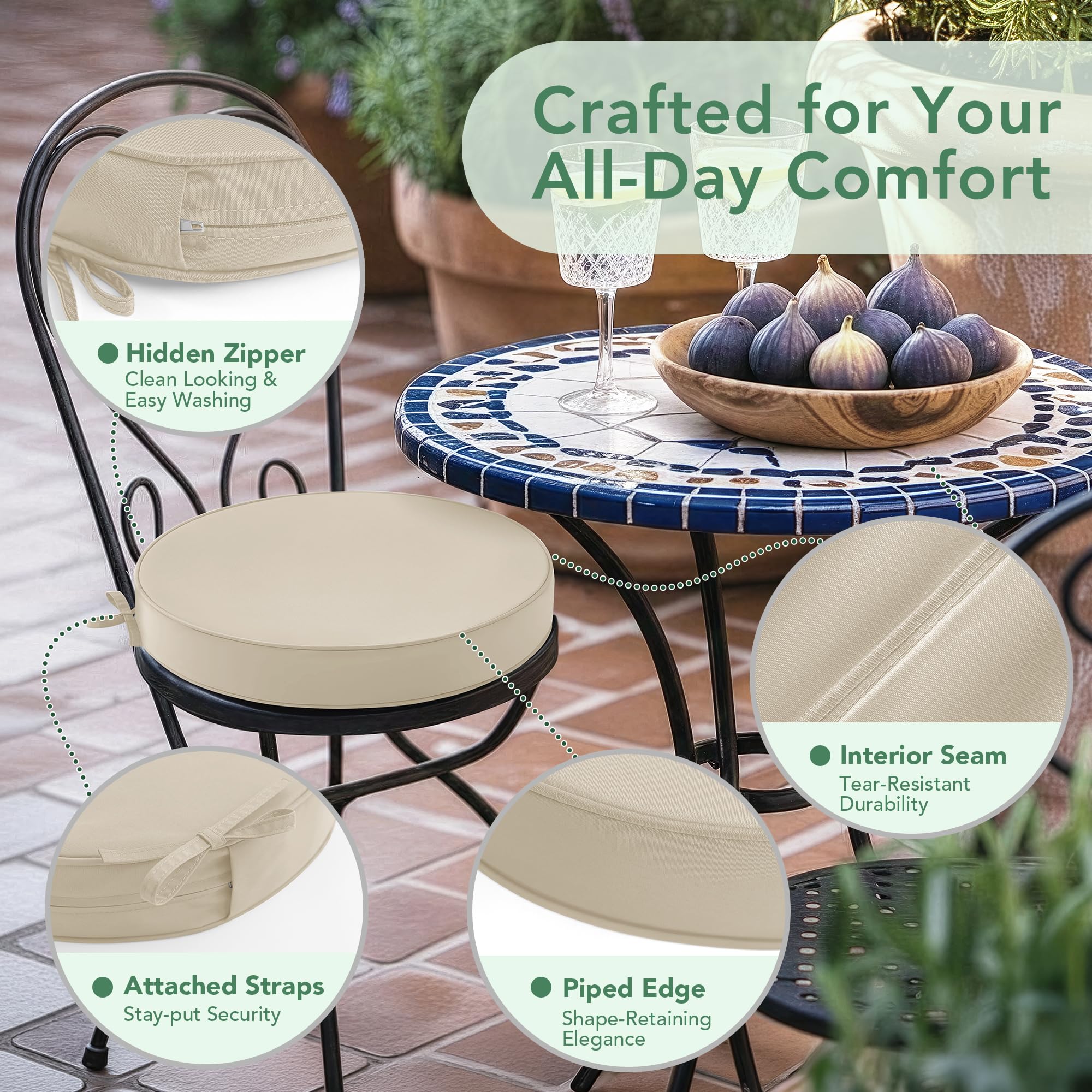 Secure & Easy to Maintain: Each circle outdoor cushions features two durable ties to keep it securely fastened to your furniture, preventing slipping and shifting. The removable cover is machine washable for effortless cleaning—simply unzip, remove, and toss it in the wash to maintain a fresh look.