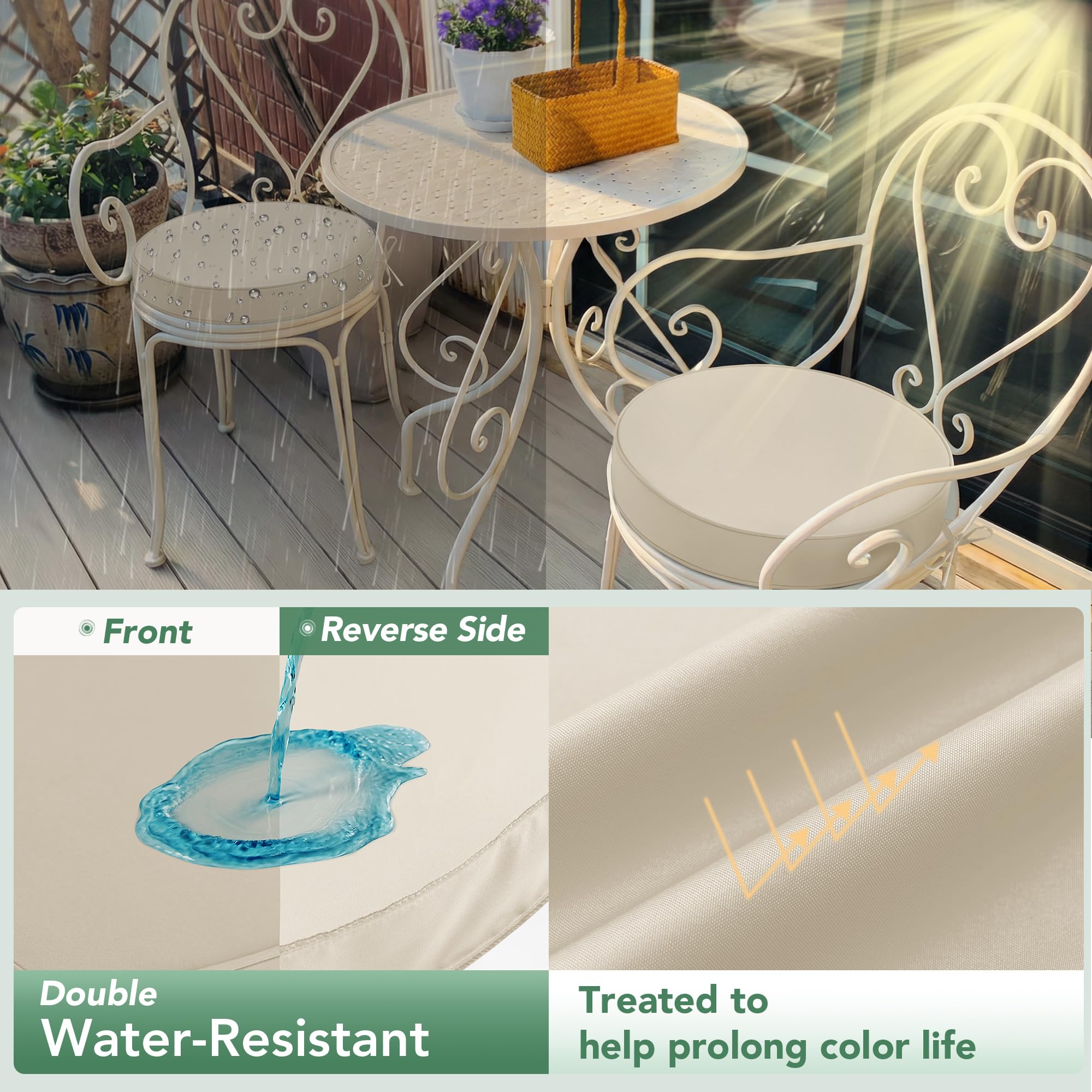 Waterproof & Fade-Resistant: Crafted from high-quality 250gsm polyester fabric, these premium bistro chair cushions are built to withstand the elements. The weather-resistant fabric repels moisture, keeping your outdoor seat cushions dry and protected from rain, while anti-fading technology preserves their vibrant colors even after prolonged sun exposure.
