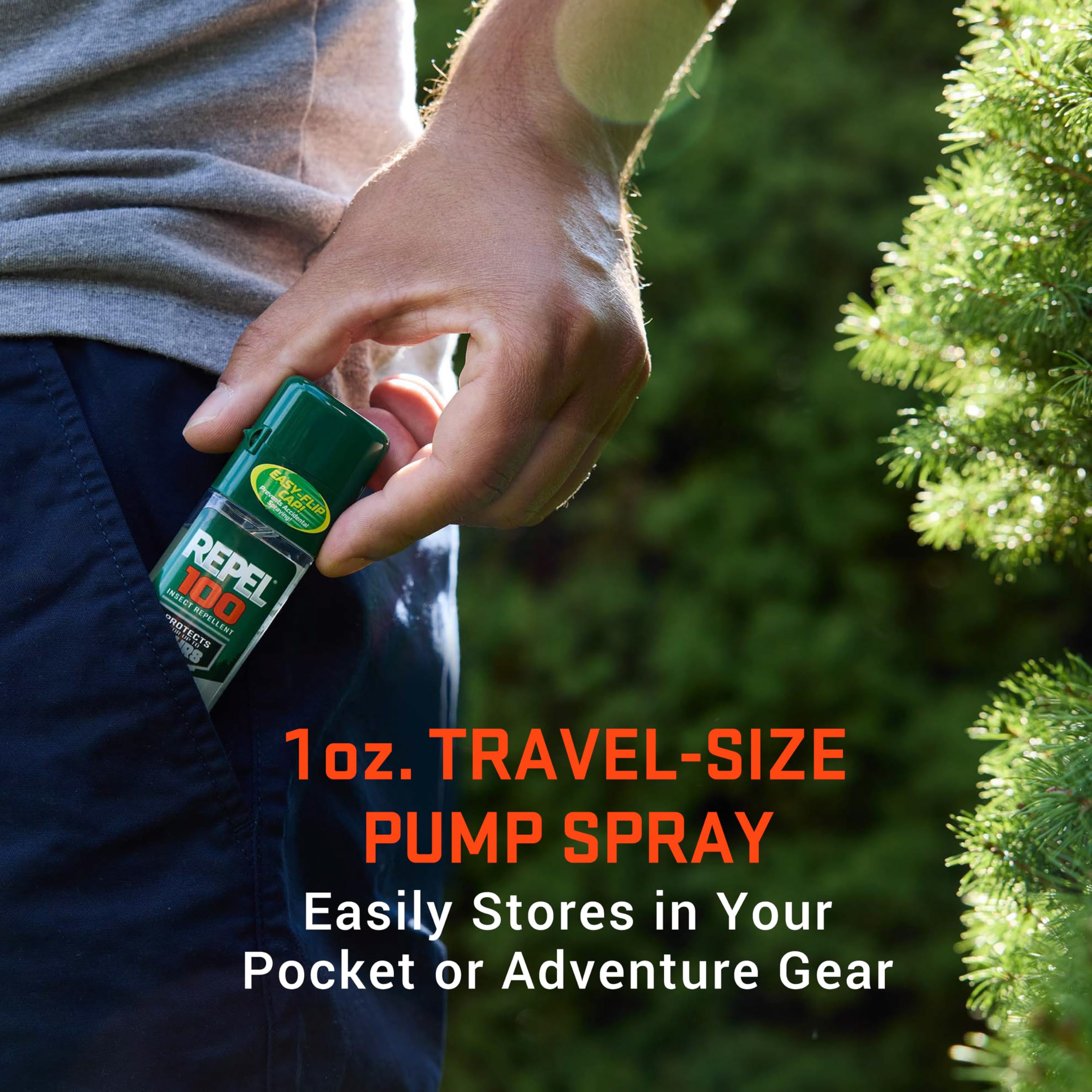 TRAVEL-SIZE PUMP SPRAY: This 1-ounce, flip-cap bottle is perfect for outdoor travel – the compact size stores perfectly with whatever adventure gear you're taking that day.