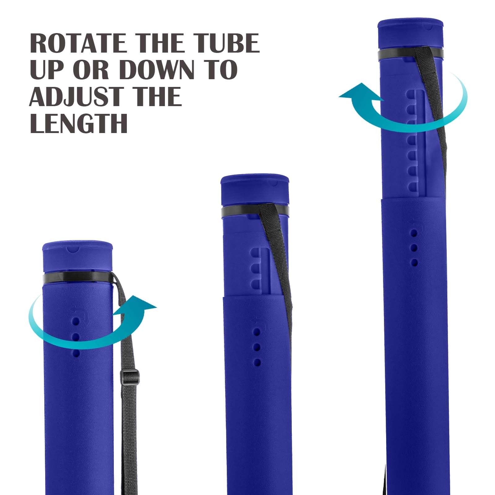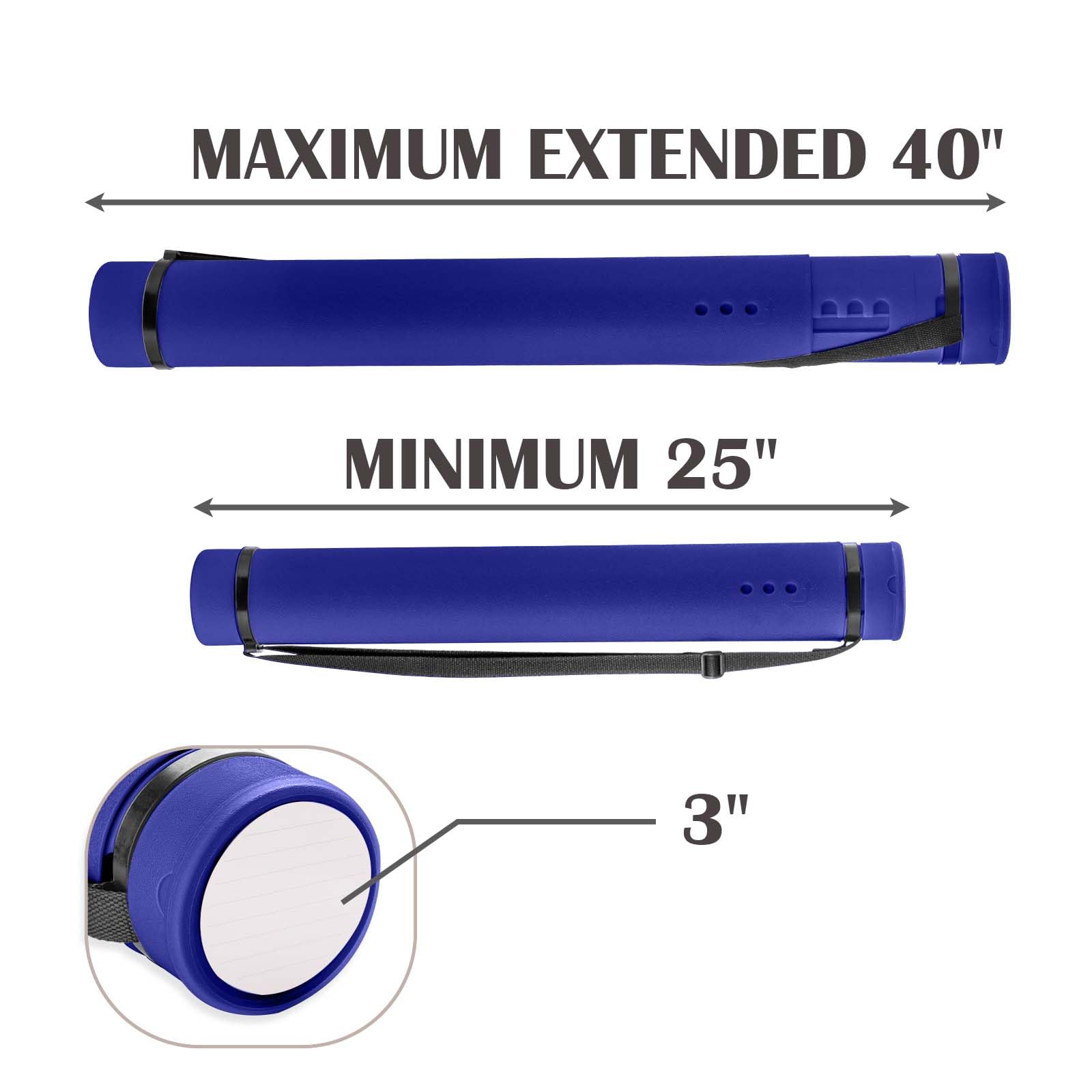 Extendable Tube: JJRING poster tube has a telescopic tube to store longer posters. It measures 25" before extension and can be up to 40" when fully extended. Rotate the tube up or down to adjust the length and rotate back to lock