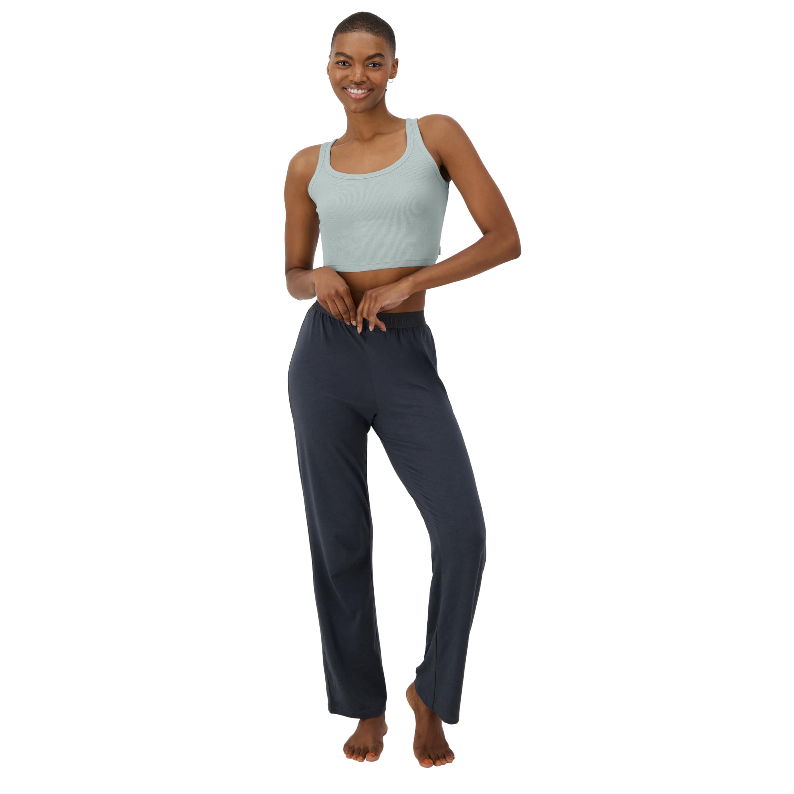 Description ELEVATE YOUR EVERYDAY BASICS. A versatile choice for sleeping or simply unwinding, this SuperSoft Comfywear ribbed crop tank top and lounge pants set from the Hanesยฎ Originals collection is exceptionally lightweight - providing a cool and comfy feel. Our softest fabric EVER, this women's lounge set is made with luxe viscose from bamboo blended with cotton and spandex for a flexible fit. The Taglessยฎ interior eliminates itching and irritation caused by tags, while the crop top's ribbed fabrication allows you to move easily and freely - something you're sure to love. The mid-rise lounge pants are highlighted with a tonal Hanes soft-stretch elastic waistband for added comfort. Hanes Originals. Who says you canโt have style and comfort? (Not us).