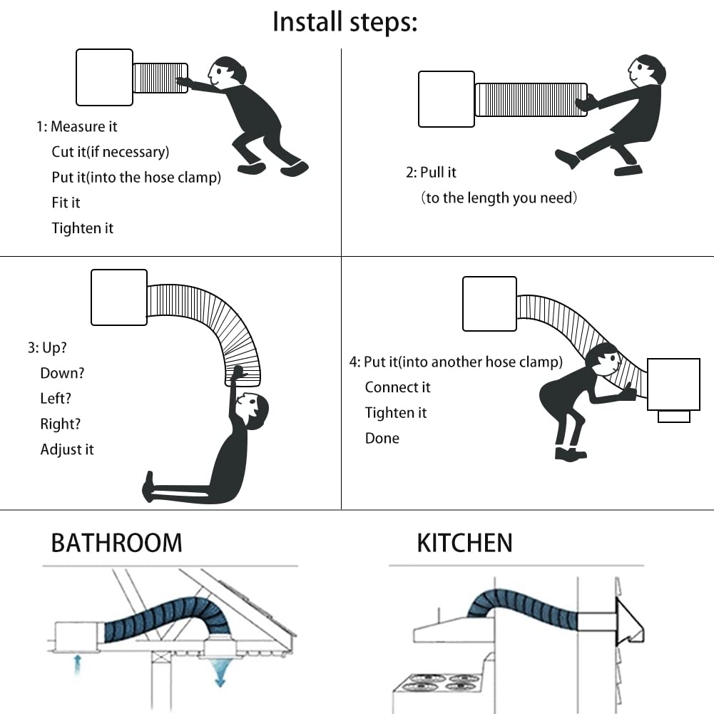 EASY TO INSTALL : Flexible and simple to Install the dryer vent hose. The dryer duct comes with two clamps to fixed the air ducting.Simple, convenient and durable.